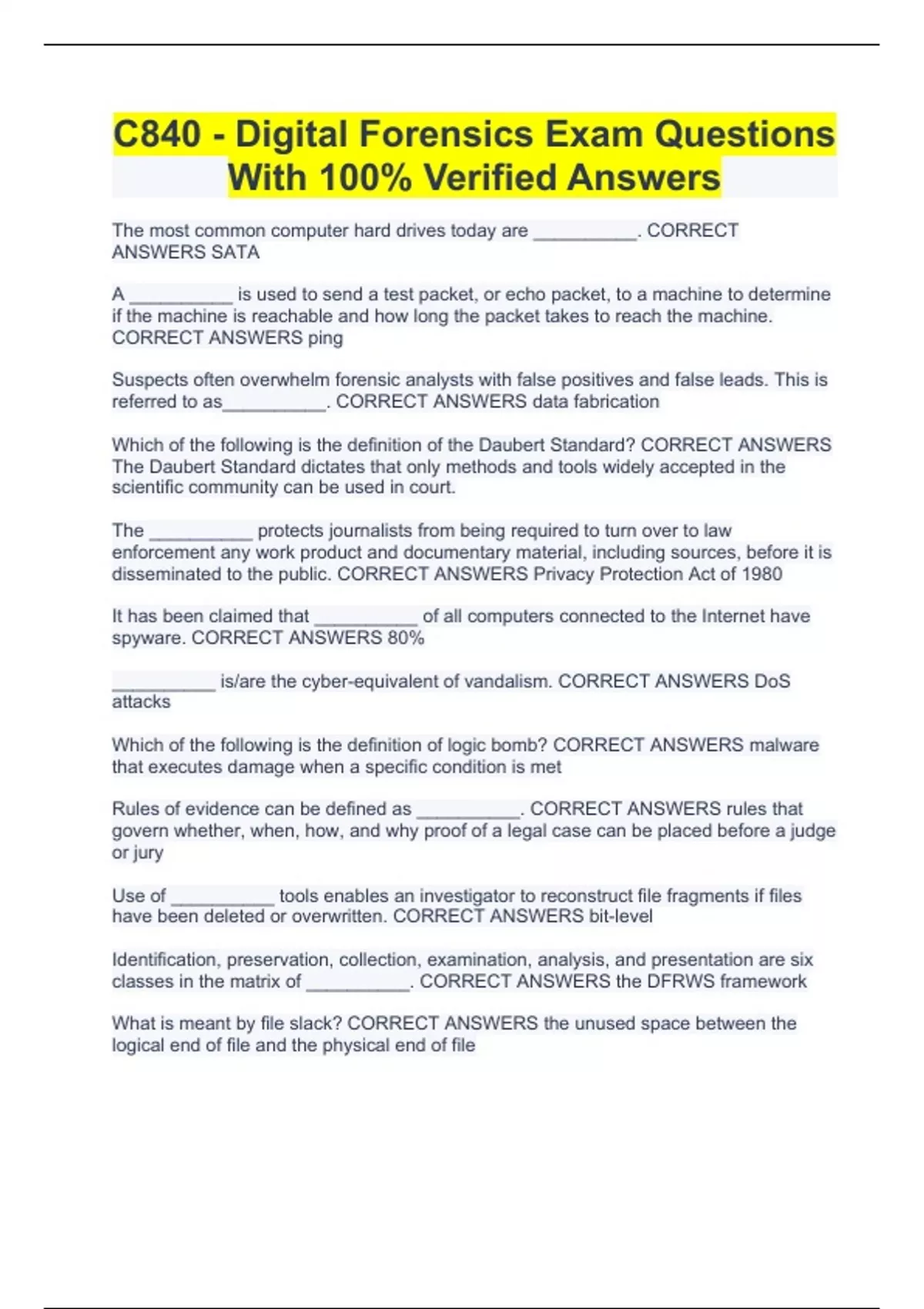 C840 - Digital Forensics Exam Questions With 100% Verified Answers