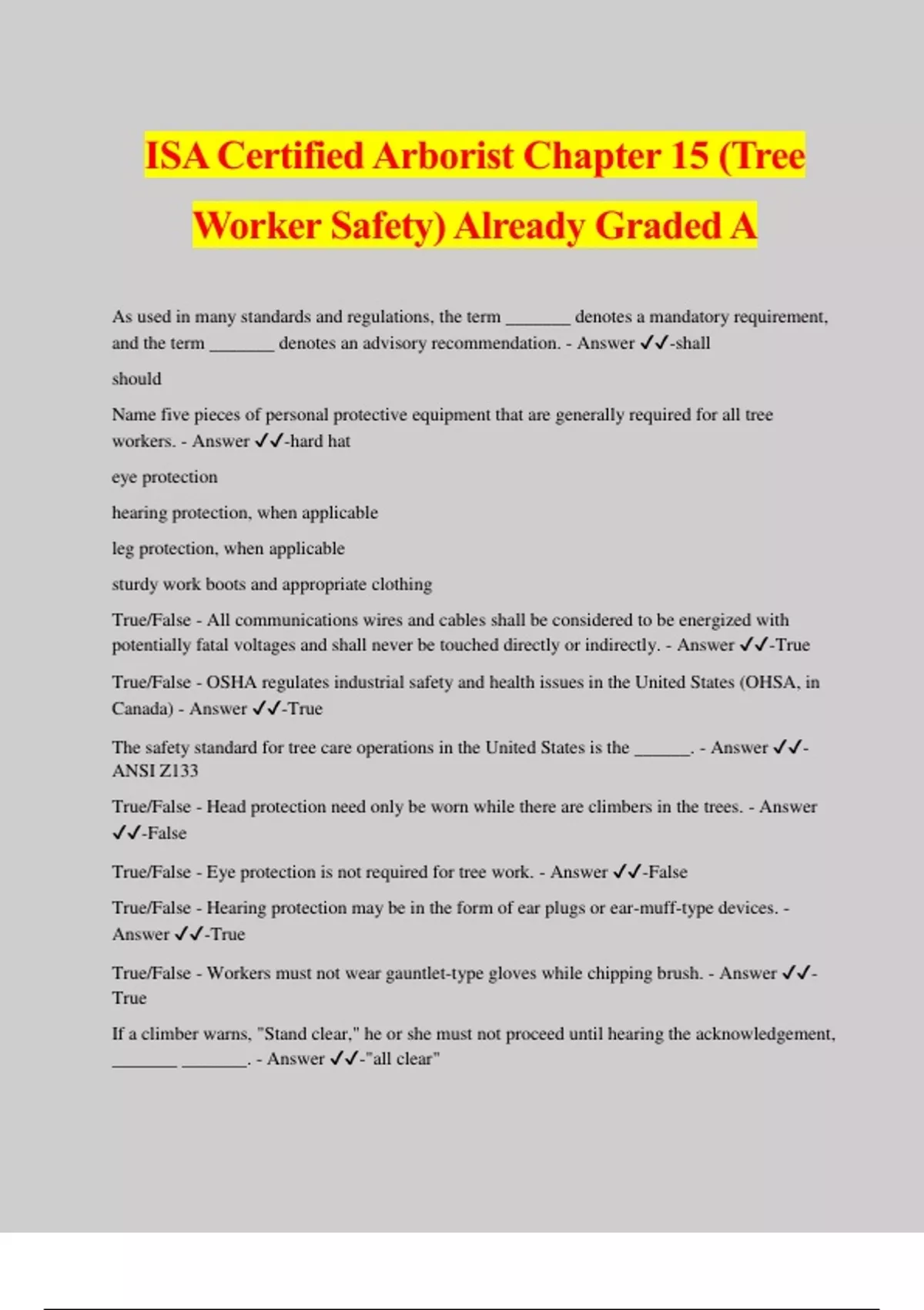 ISA Certified Arborist Chapter 15 (Tree Worker Safety) Already Graded A