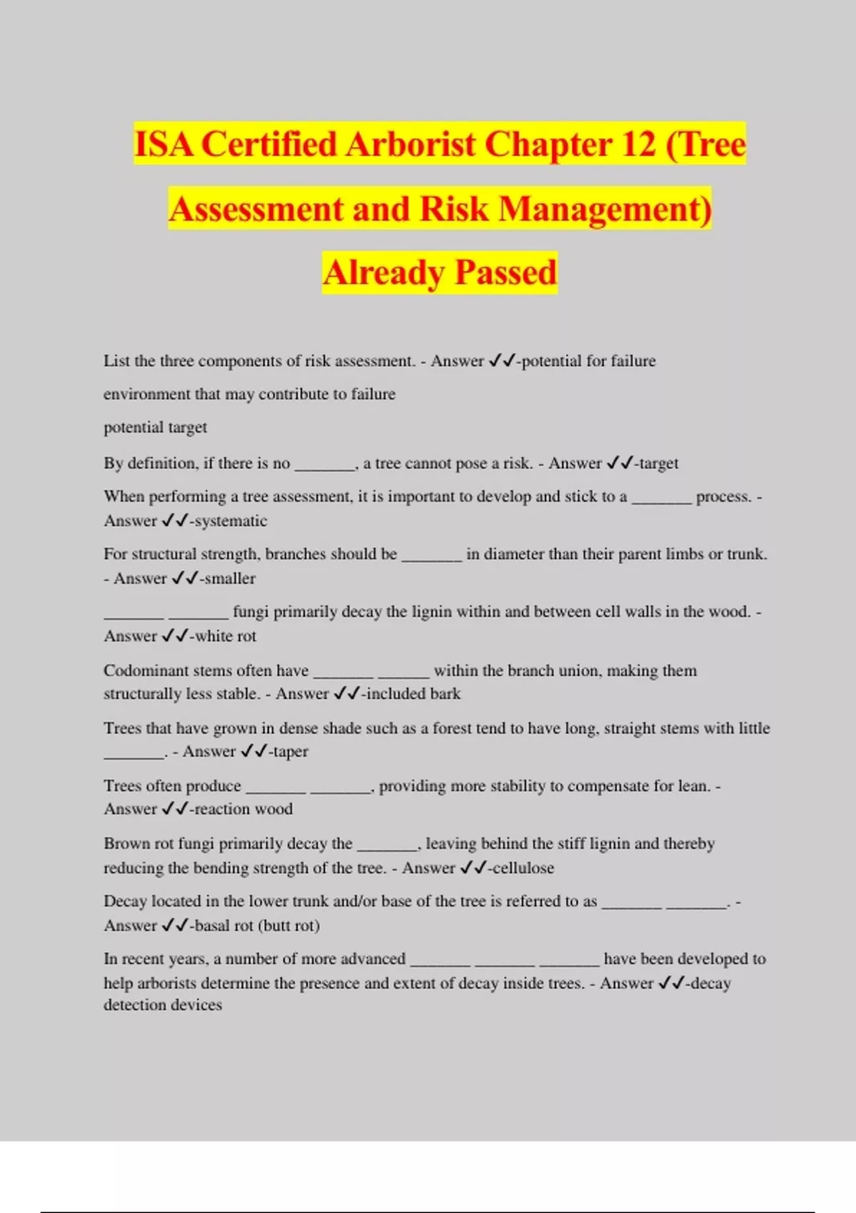 ISA Certified Arborist Chapter 12 (Tree Assessment and Risk Management) Already Passed