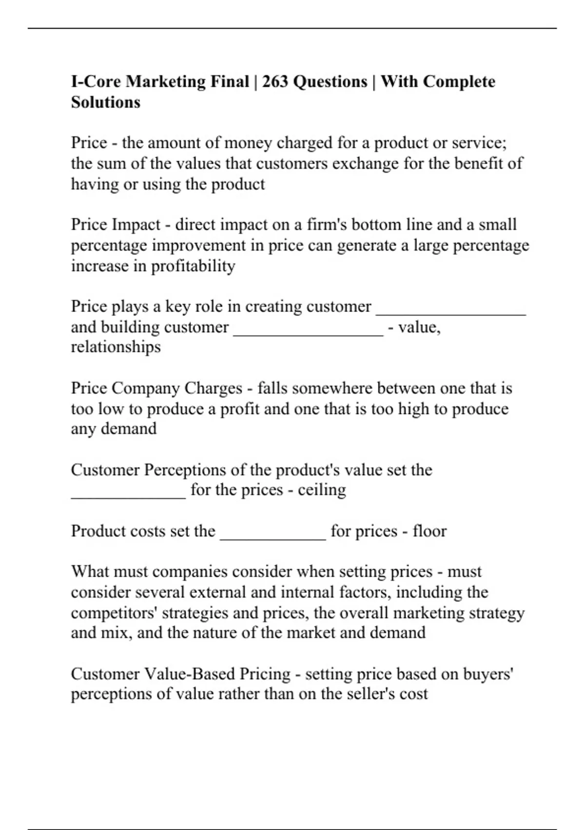 I-Core Marketing Final | 263 Questions | With Complete Solutions
