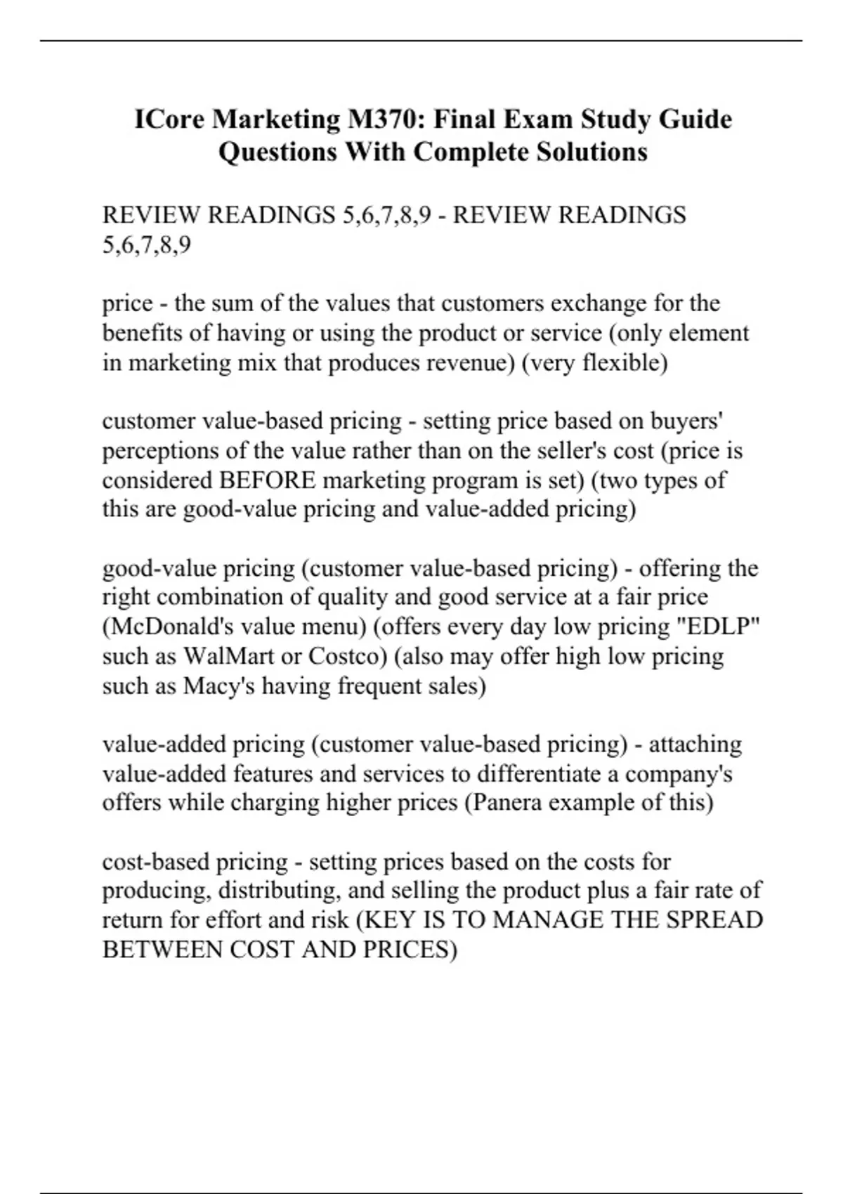 ICore Marketing M370: Final Exam Study Guide Questions With Complete Solutions