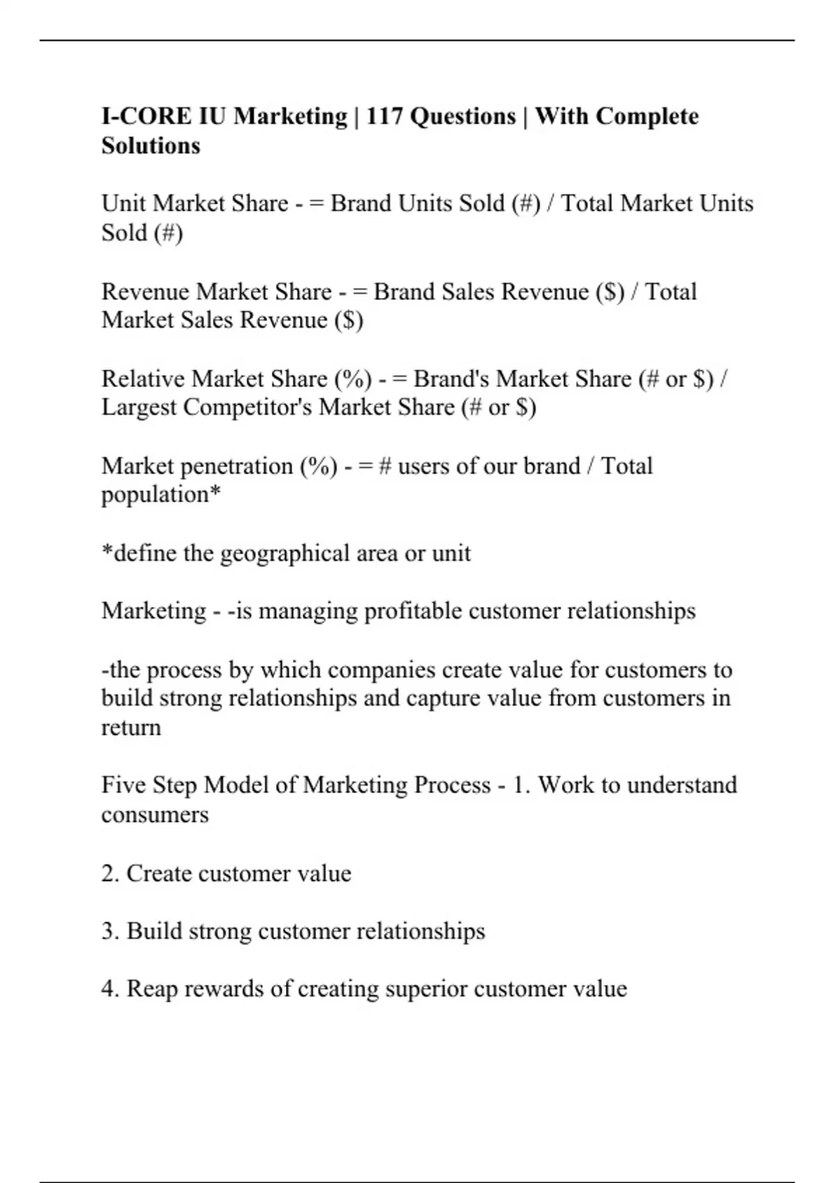 I-CORE IU Marketing | 117 Questions | With Complete Solutions