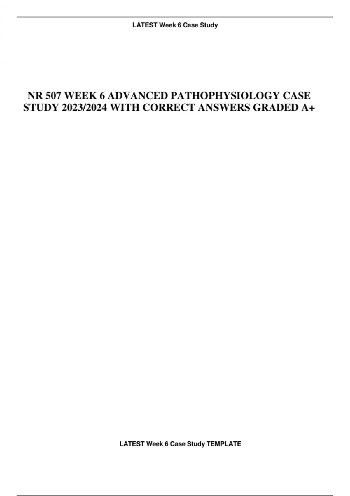 NR 507 WEEK 6 ADVANCED PATHOPHYSIOLOGY CASE STUDY 2023/2024 WITH CORRECT ANSWERS GRADED A+