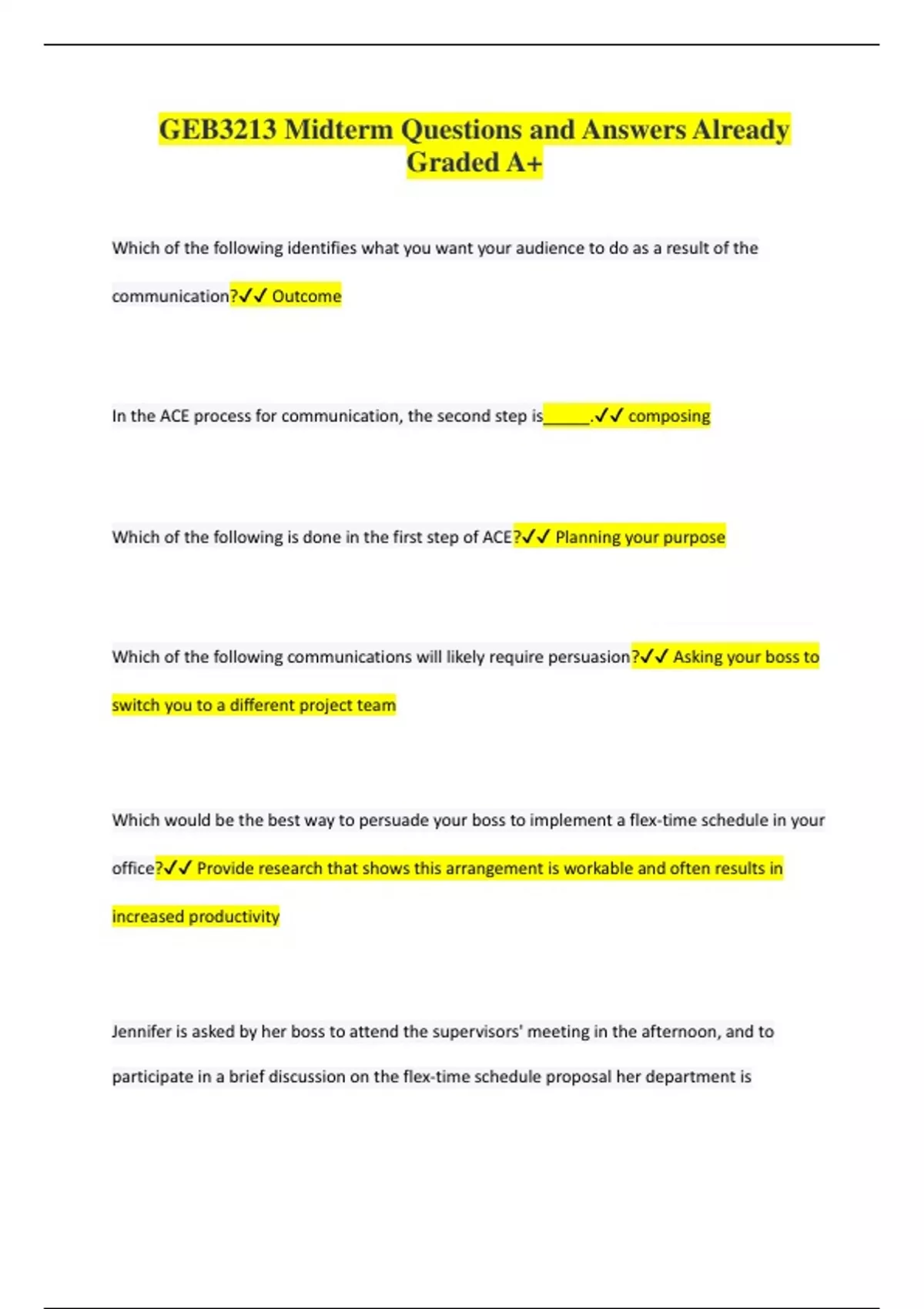 GEB3213 Midterm Questions and Answers Already Graded A+