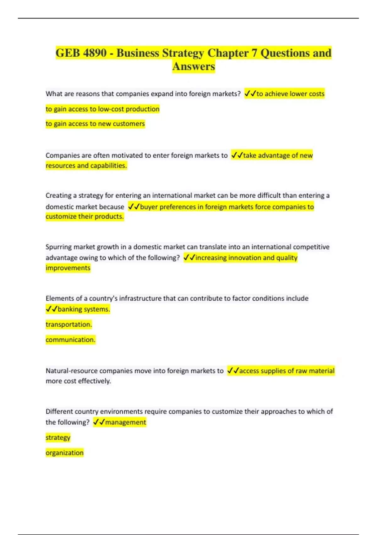 GEB 4890 - Business Strategy Chapter 7 Questions and Answers