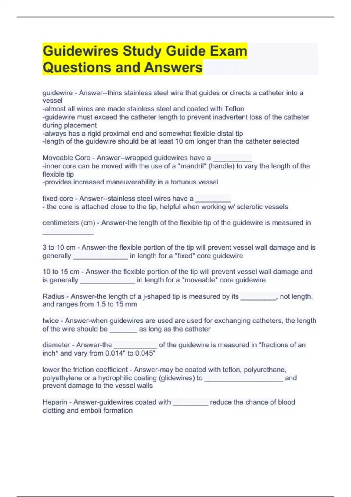 Guidewires Study Guide Exam Questions and Answers