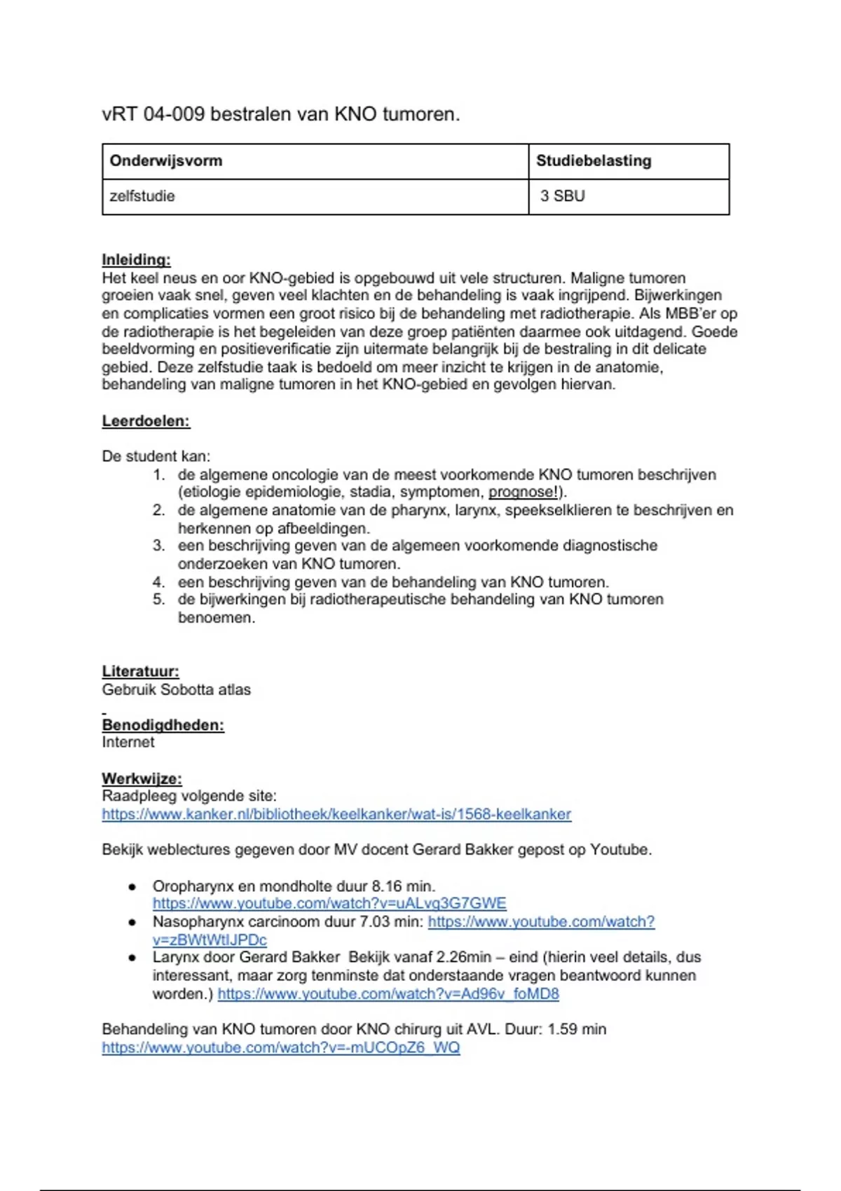 vRT 04-009 bestralen van KNO tumoren.