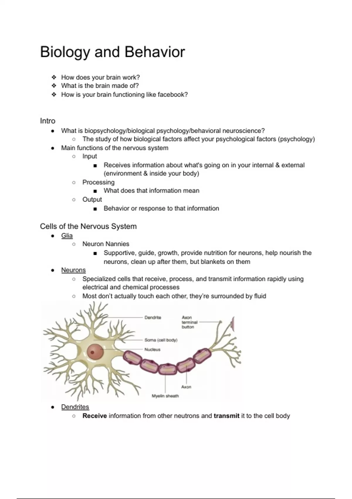In-depth notes on Biology and Behavior in Psychology