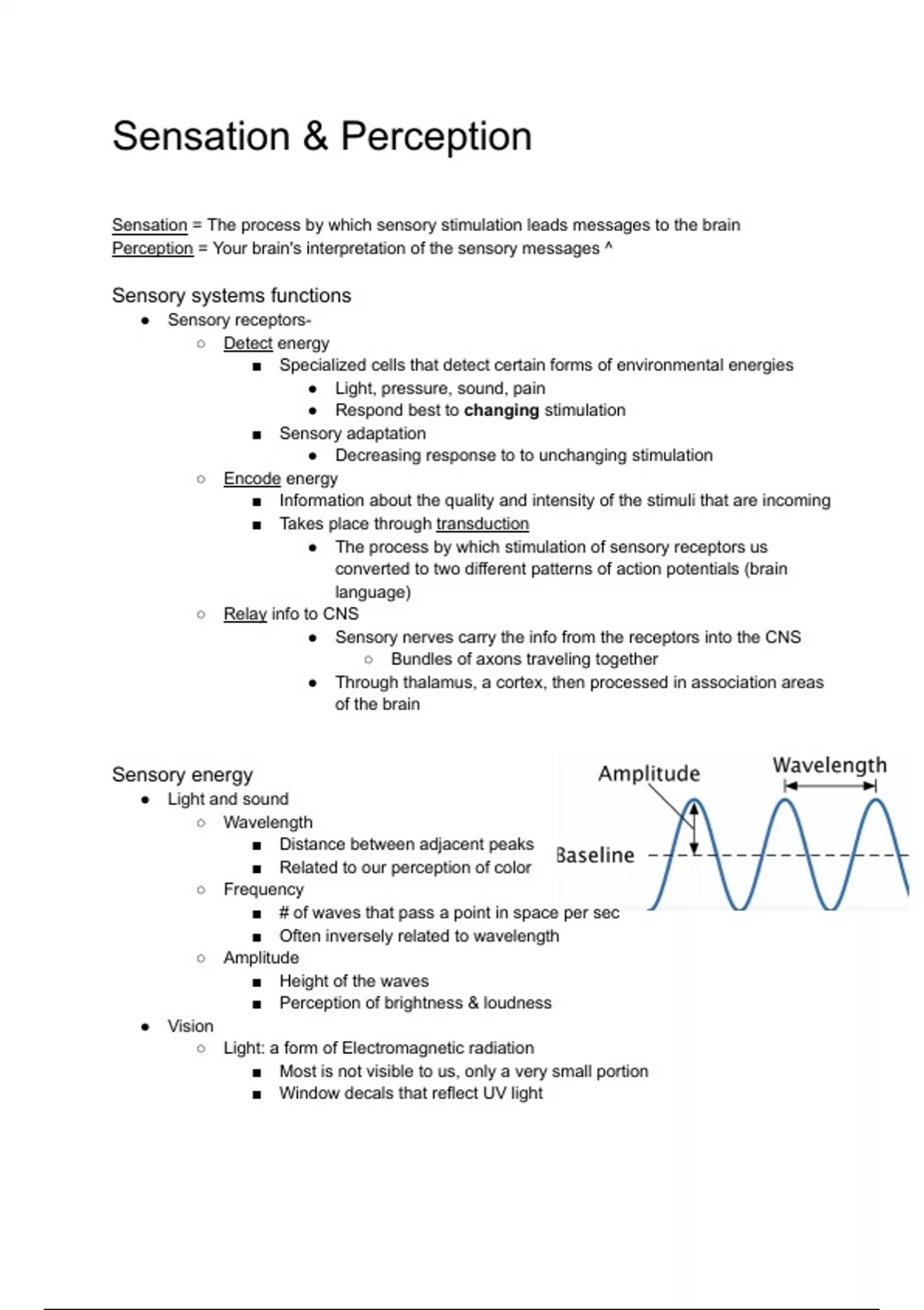 In-depth notes on Sensation and Perception in Psychology