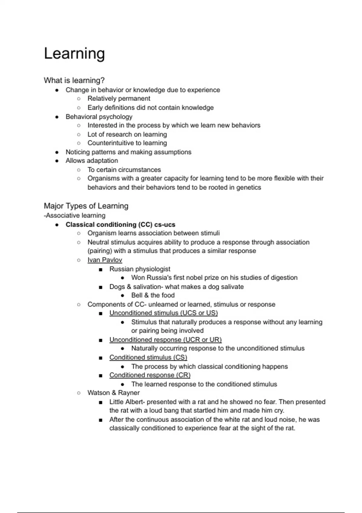 In-depth notes on Learning in Psychology.