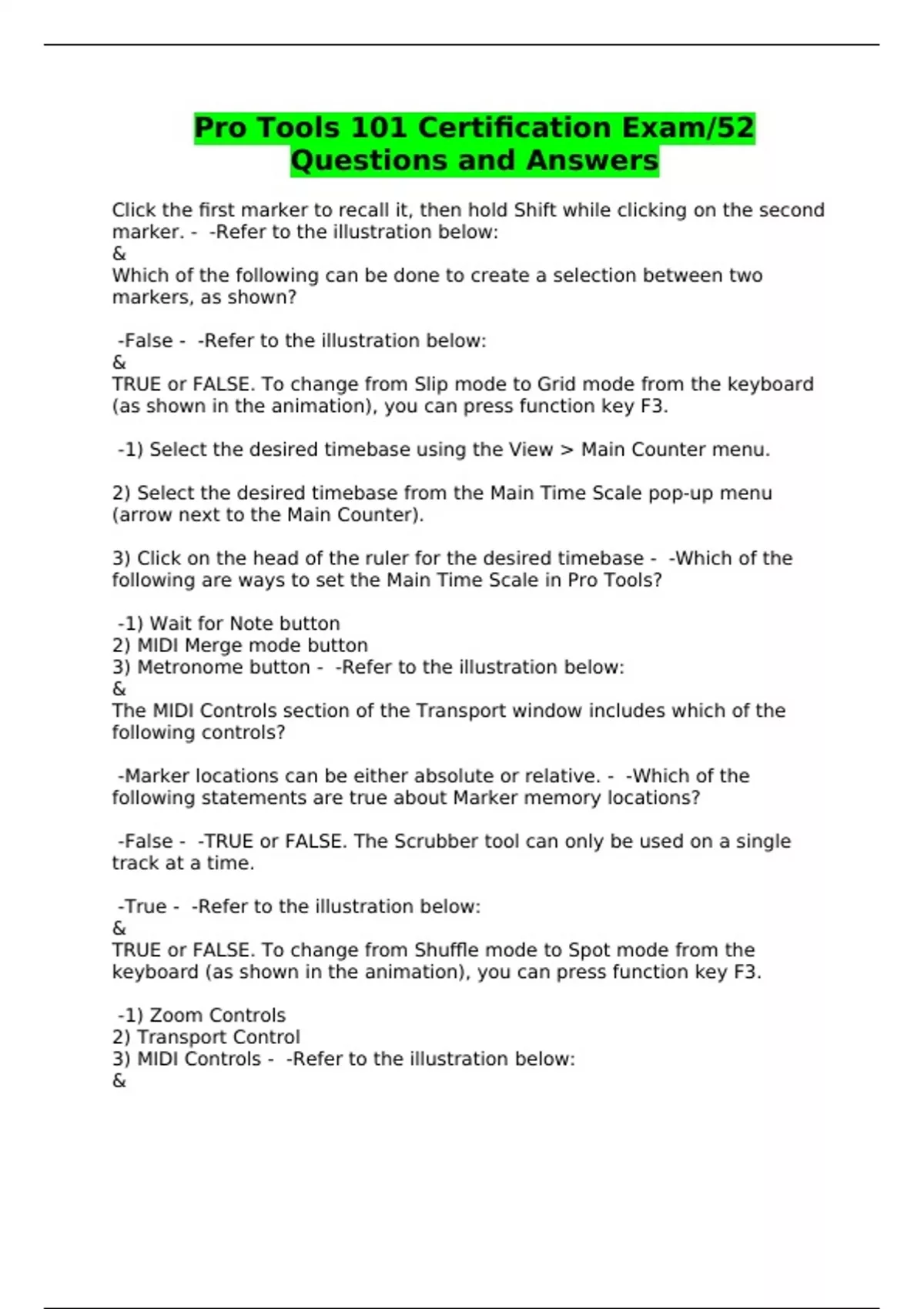 Pro Tools 101 Certification Exam/52 Questions and Answers
