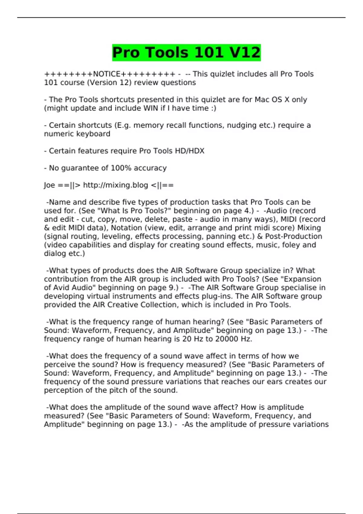 Exam of 20 pages for the course Pro Tools 101 V12 at Pro Tools 101 V12 (Pro Tools 101 V12)