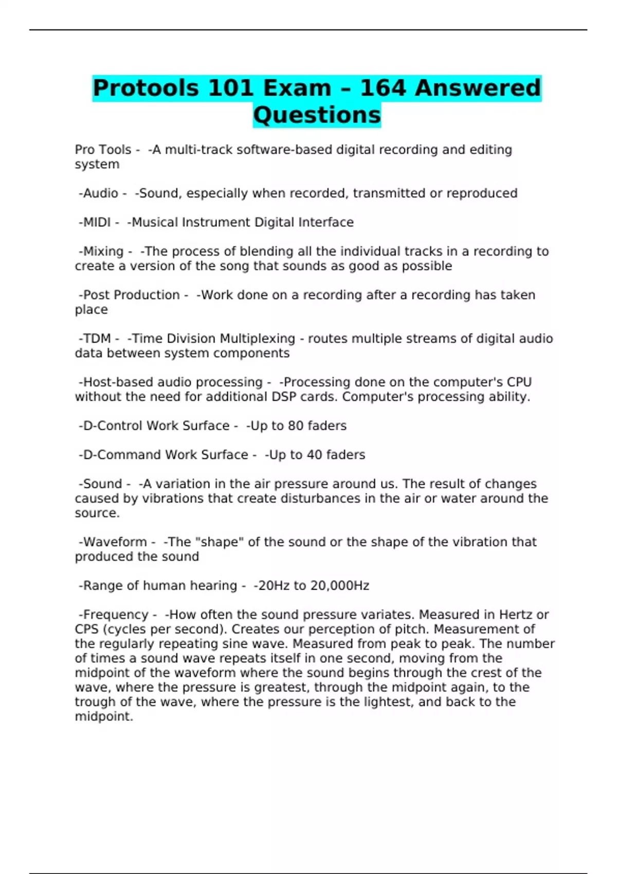 Protools 101 Exam – 164 Answered Questions