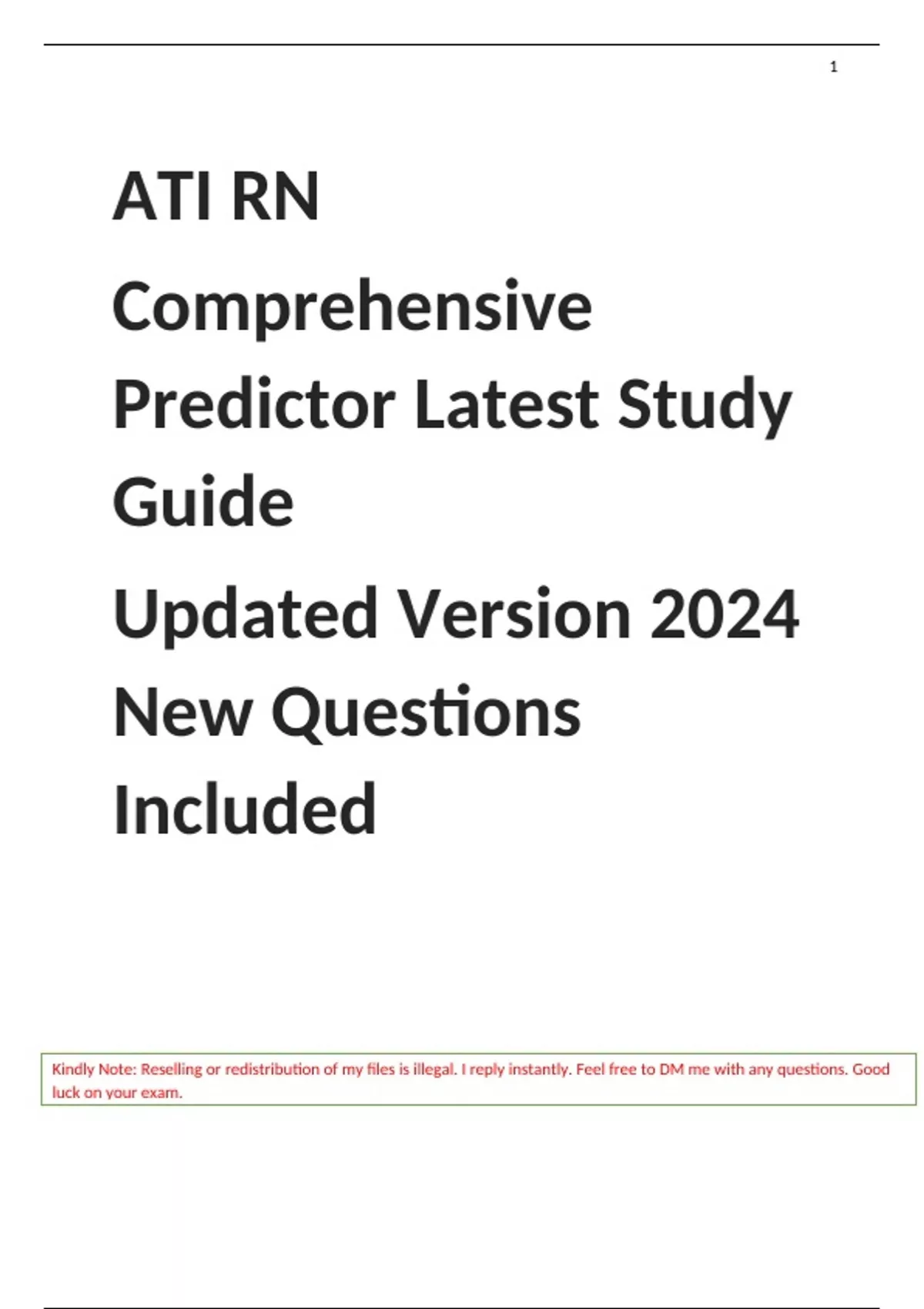ATI RN Comprehensive Predictor Latest Study Guide Updated Version 2024 New Questions Included.
