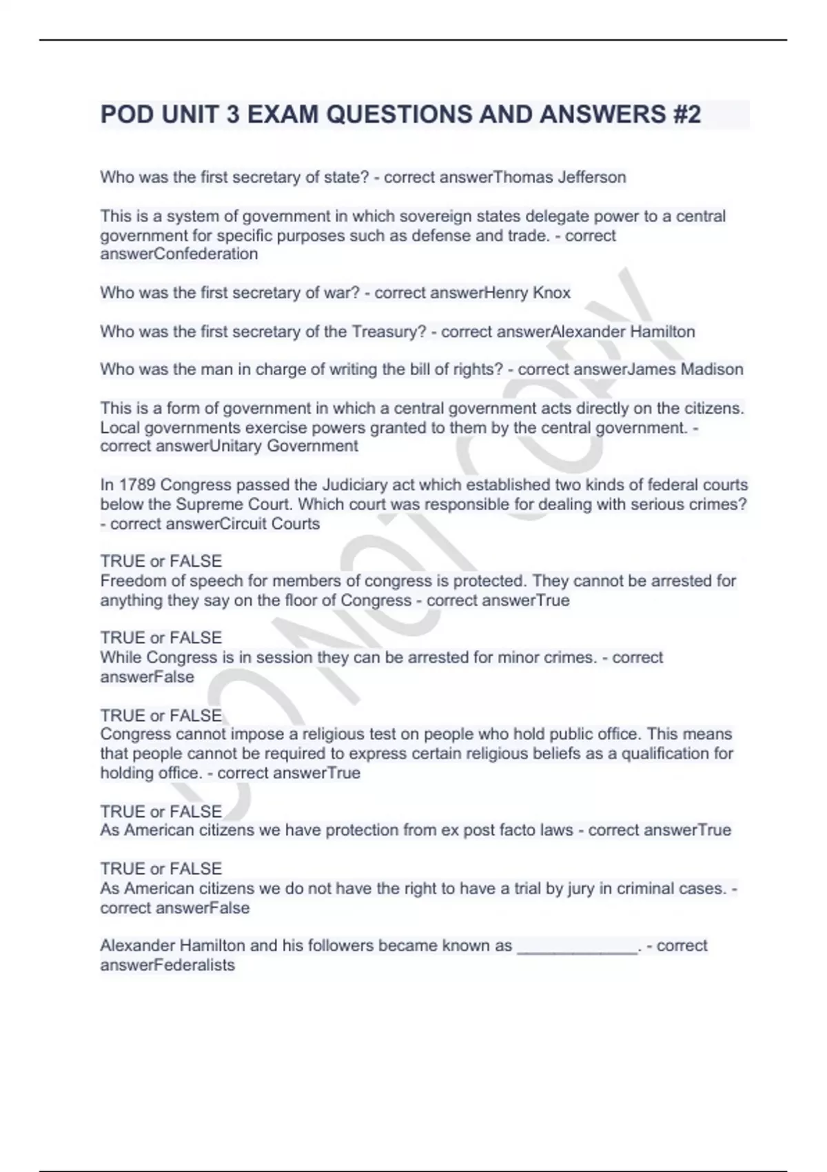 POD UNIT 3 EXAM QUESTIONS AND ANSWERS #2.