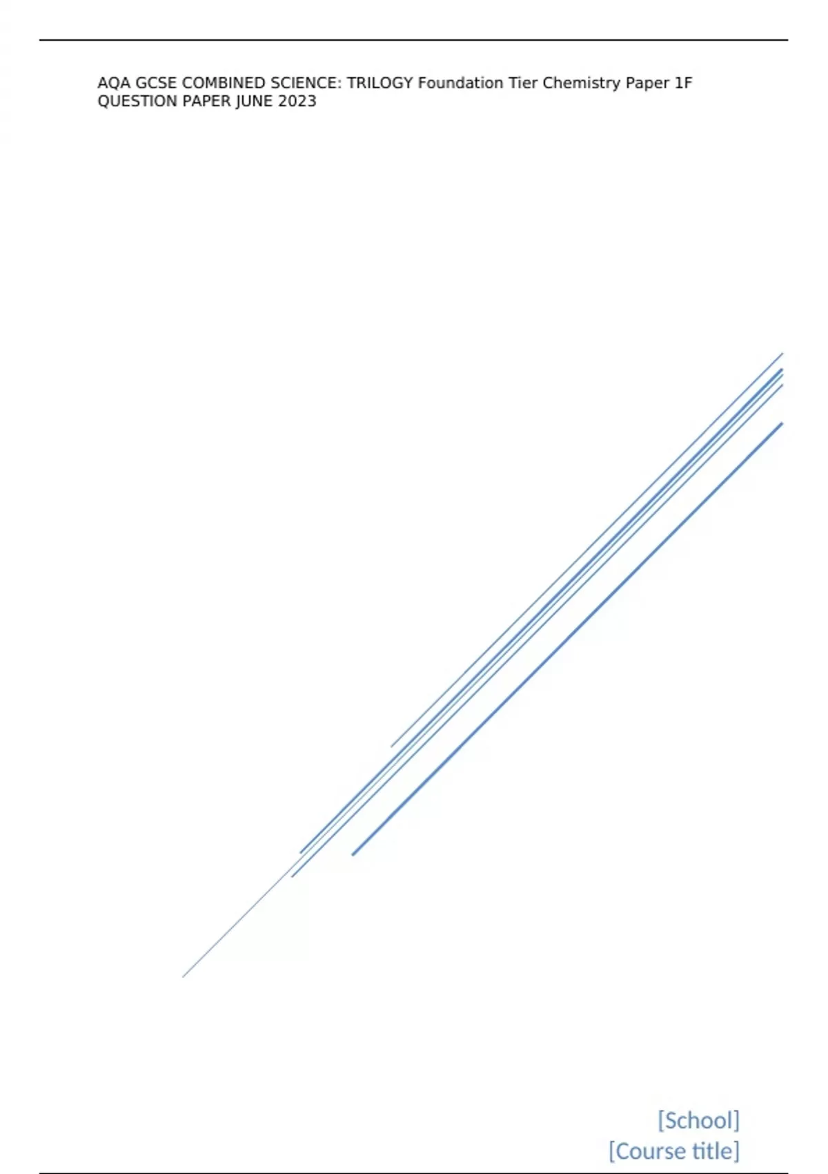 AQA GCSE COMBINED SCIENCE: TRILOGY Foundation Tier Chemistry Paper 1F QUESTION PAPER JUNE 2023