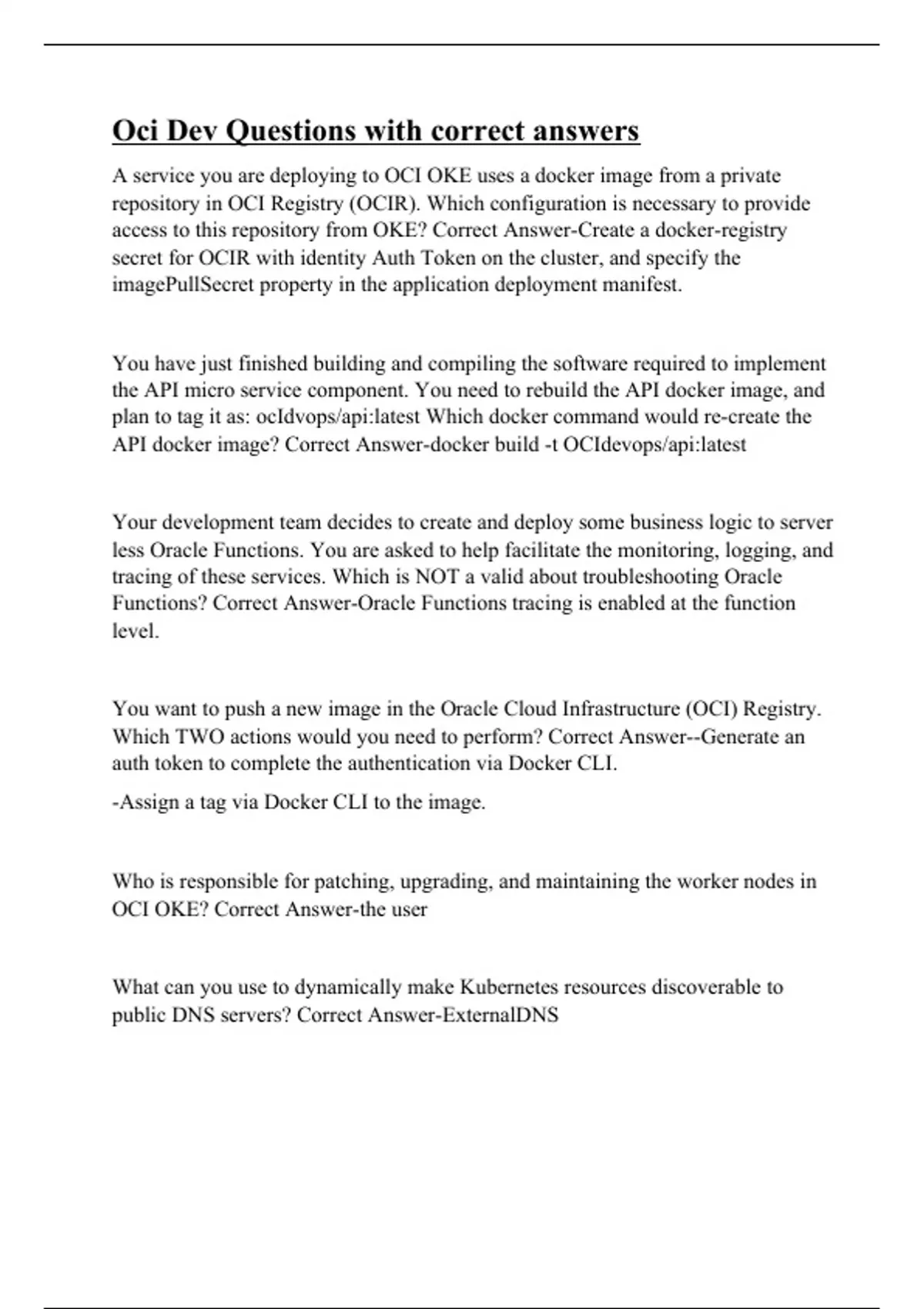 oci dev questions with correct answers