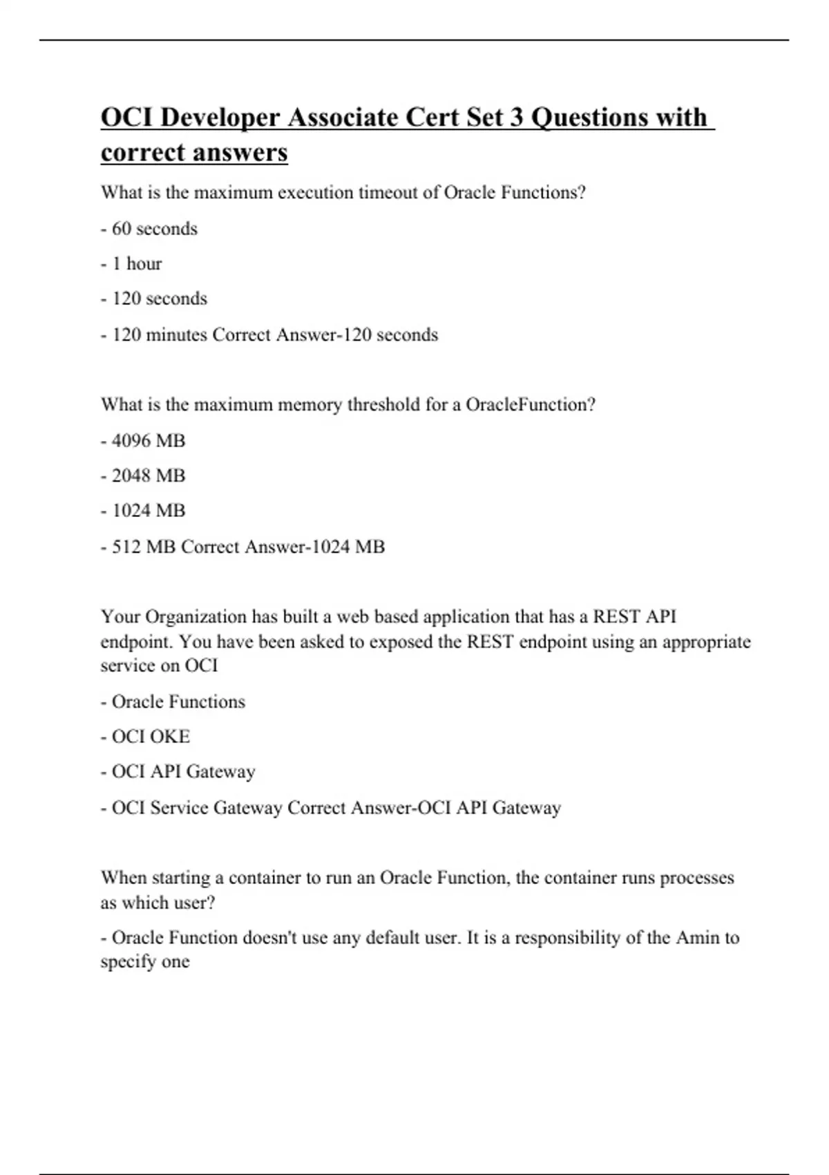 OCI Developer Associate Cert Set 3 Questions with correct answers