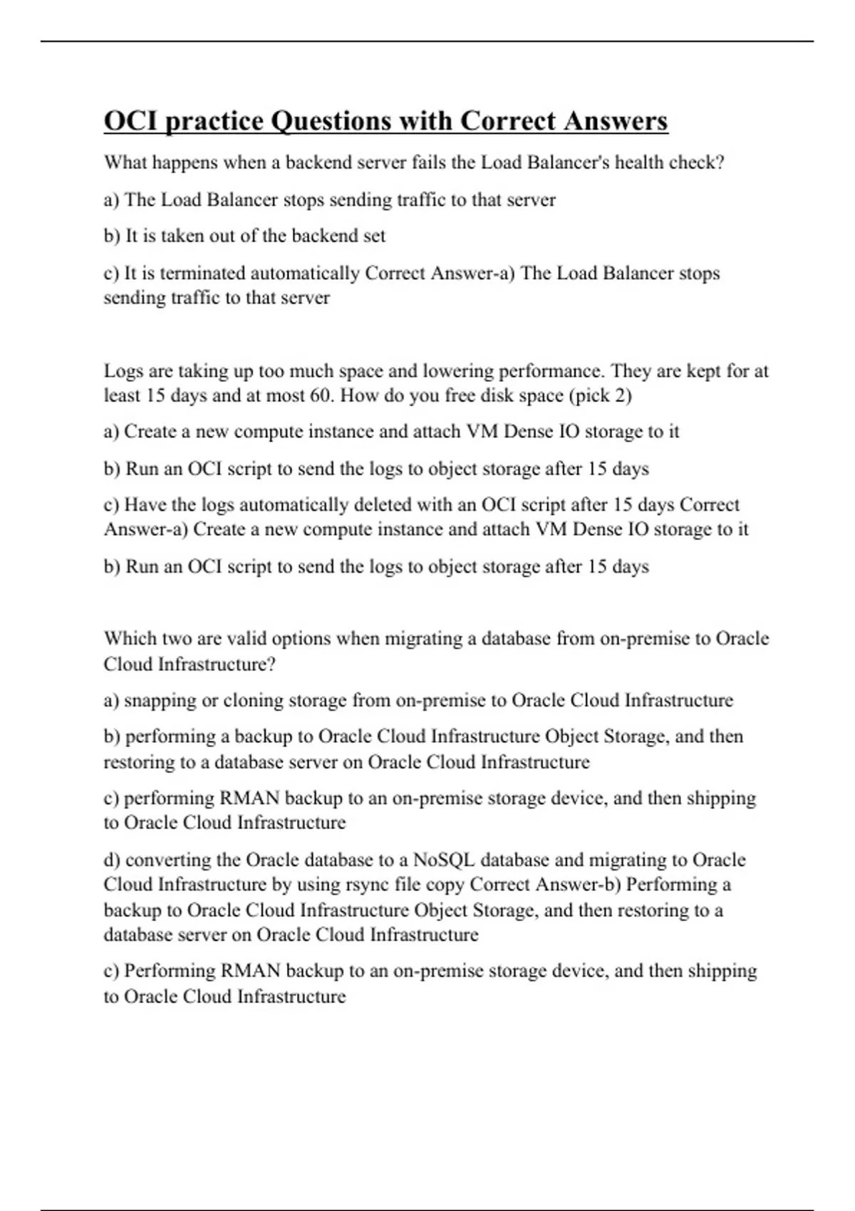 OCI practice Questions with Correct Answers