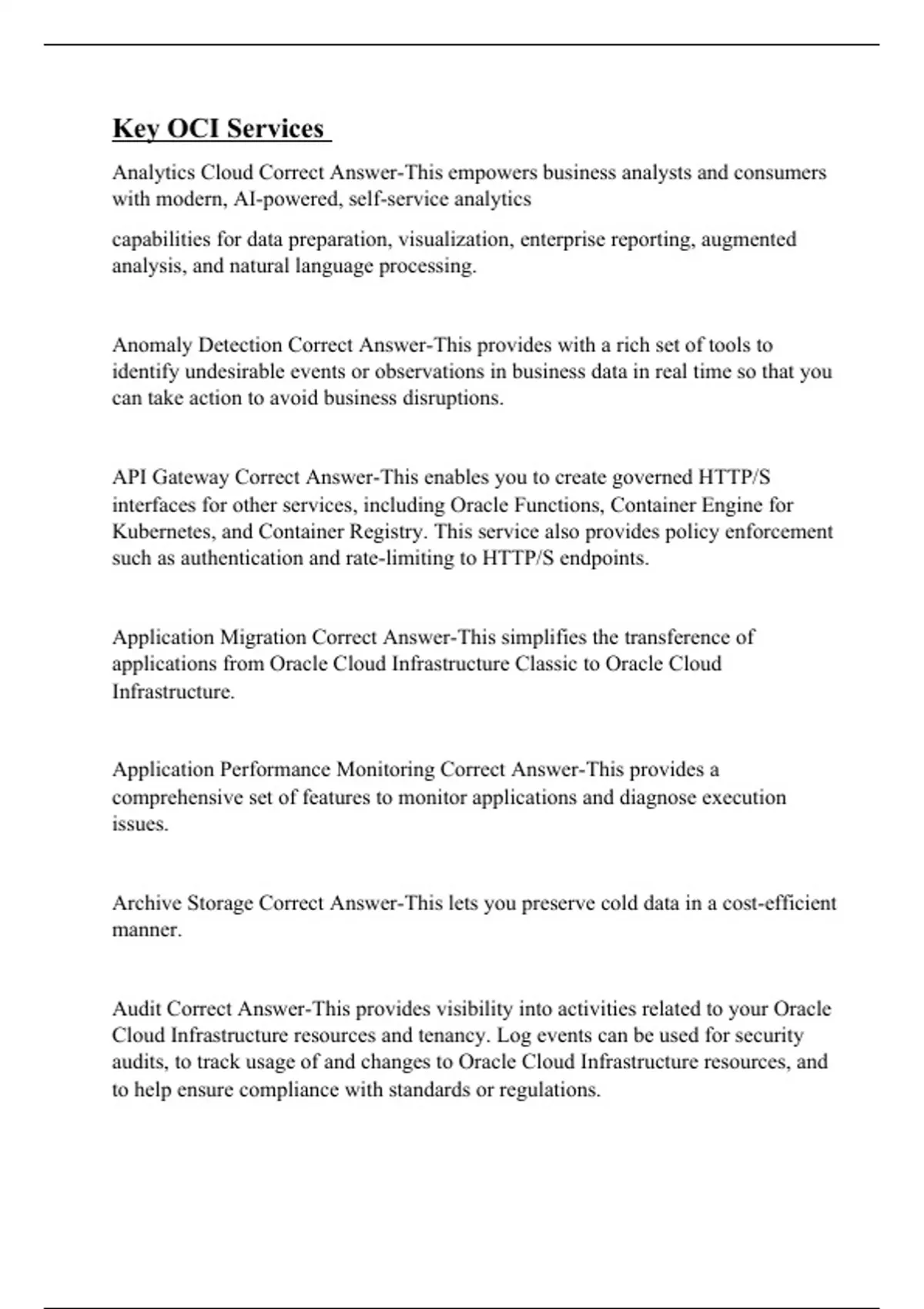 Exam of 10 pages for the course Key OCI Services at Key OCI Services (Key OCI Services)