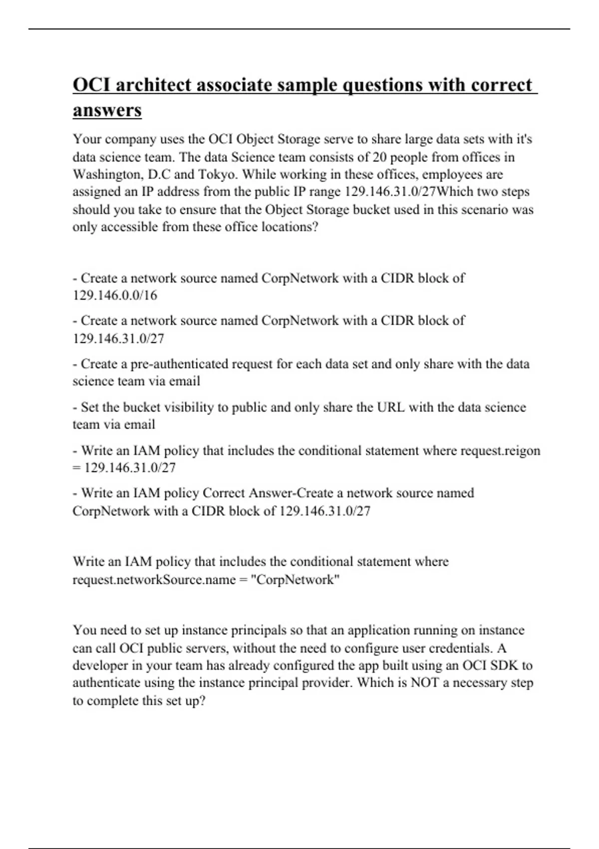 oci architect associate sample questions with corr