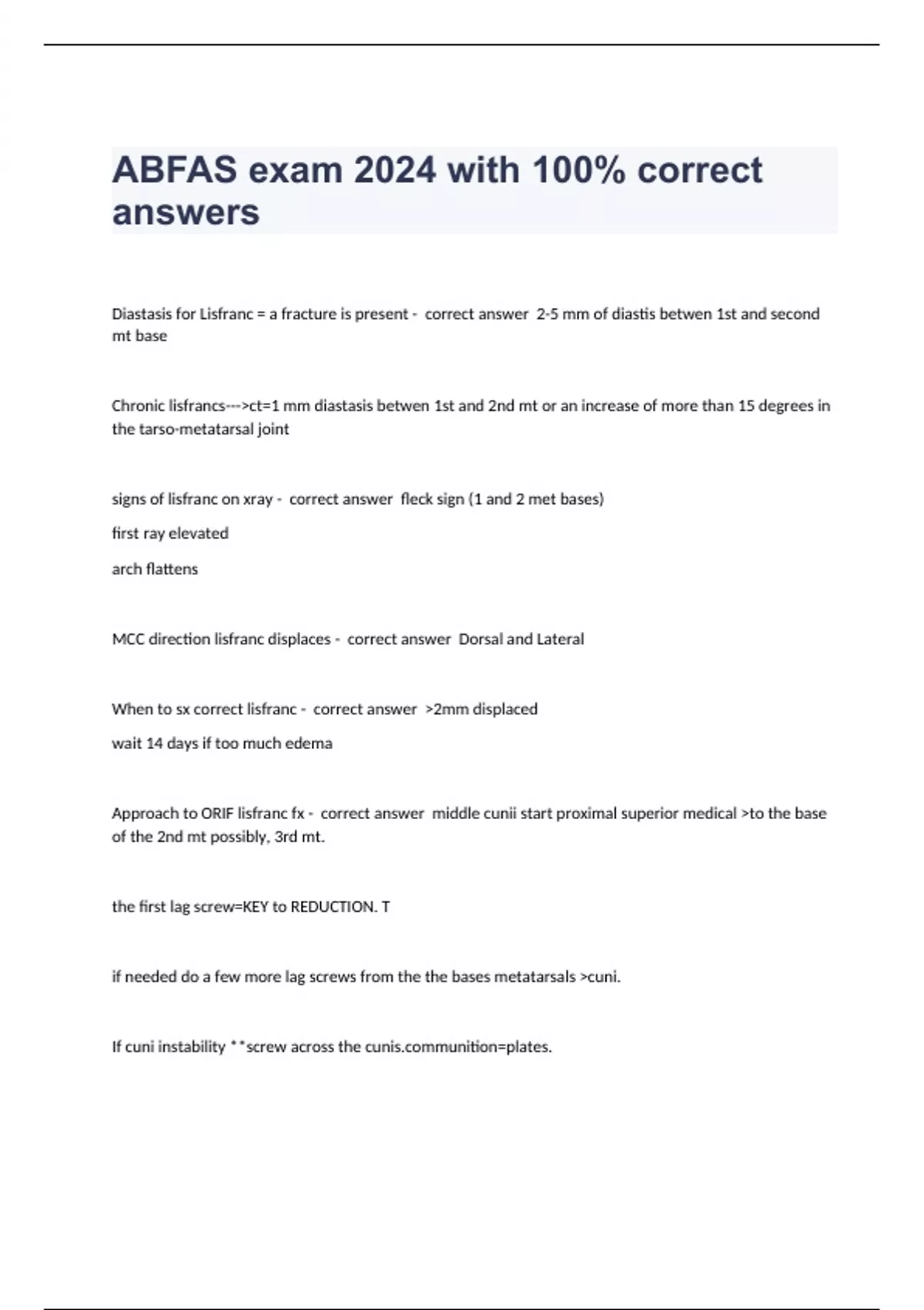 ABFAS exam 2024 with 100% correct answers