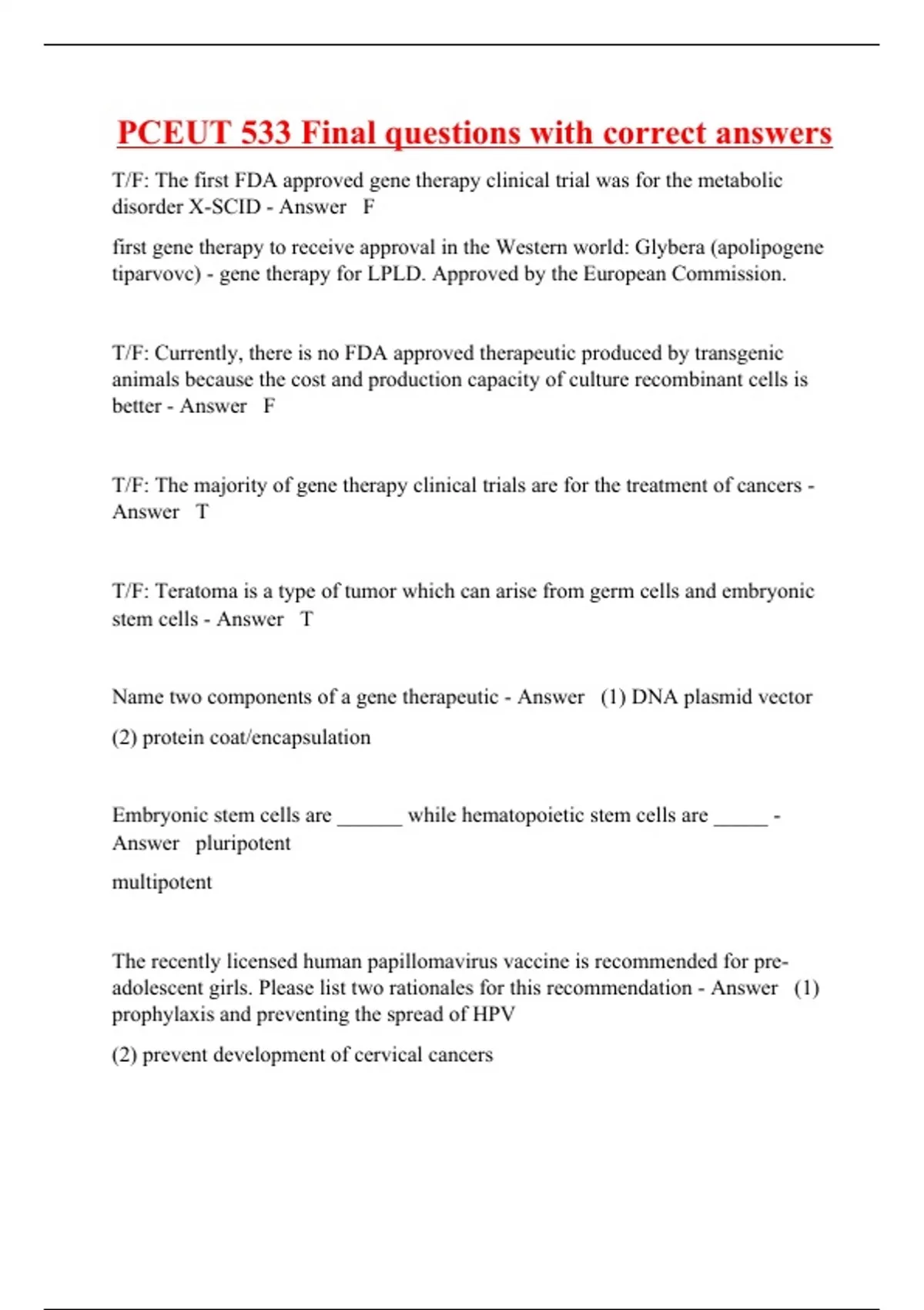 pceut 533 final questions with correct answers