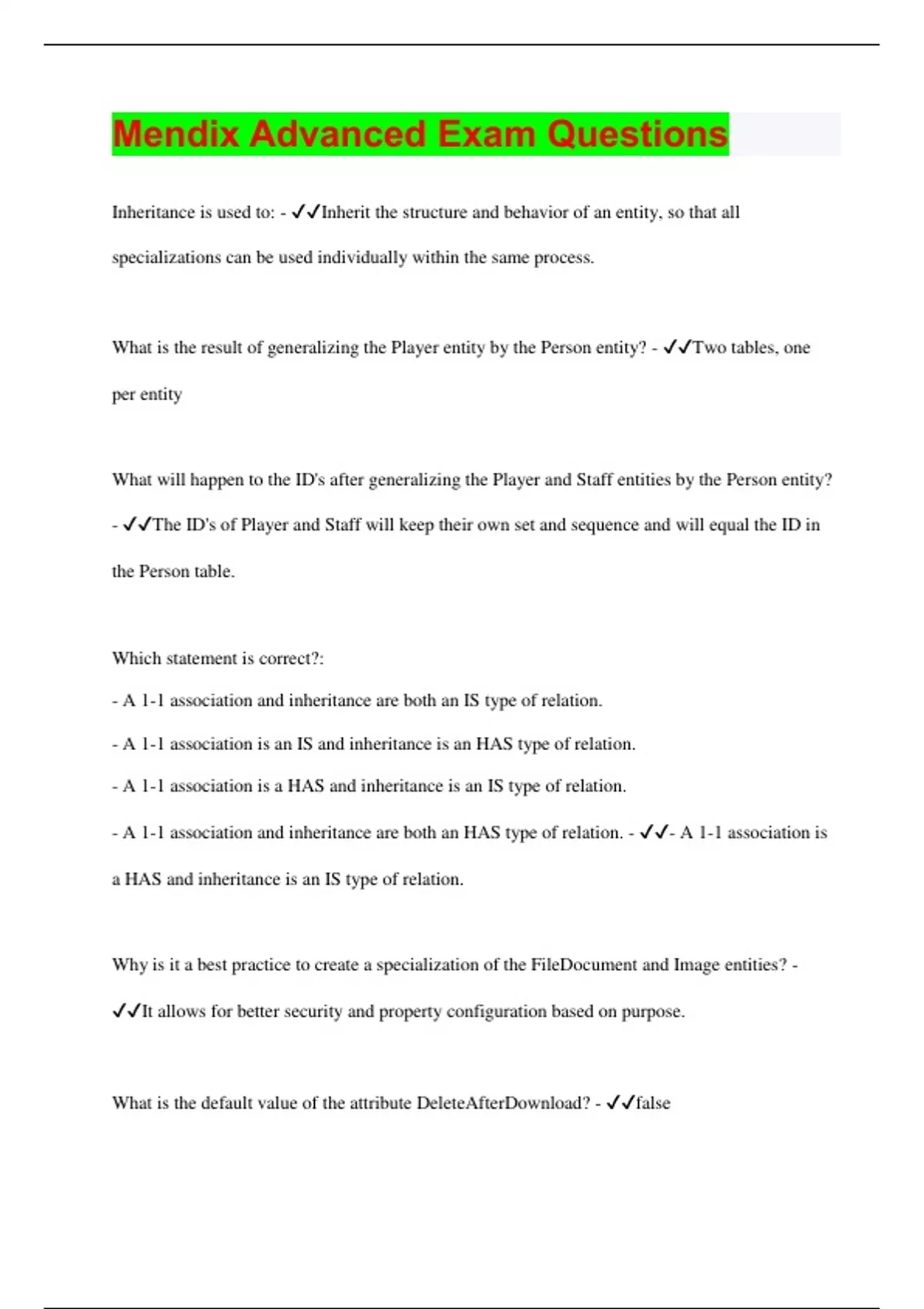 Inheritance is used to: - ✔✔Inherit the structure and behavior of an entity, so that all