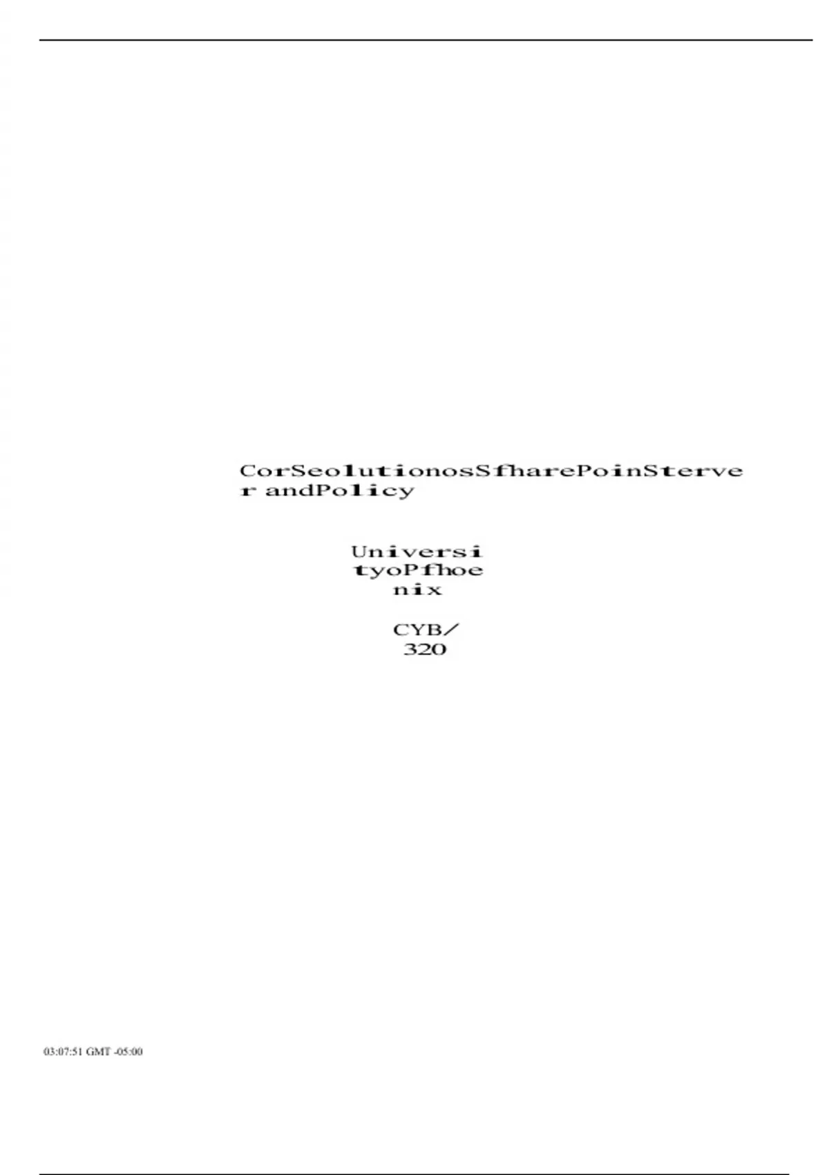 Core Solutions of SharePoint Server 2013 and Policy DM.docx CorSeolutionosSfharePoinSterver andPolicy UniversityoPfhoenix CYB/320 03:07:51 GMT -05:00 nSterver andPolicy Storage and management of documents and files is one of the main functions of SharePoint®. Documents of all kinds, including Word documents, Excel spreadsheets, PowerPoint presentations, PDFs, photos, and videos, may be created by users and uploaded. Users may collaborate on documents, track changes, and keep a history of revisions thanks to SharePoint®'s versioning and document tracking features. Lists and databases: To organize and manage structured data, users of SharePoint® can design their own lists and databases. These lists may be used for a variety of activities, including managing contacts, making surveys, keeping track of project tasks, and monitoring problems. Data may be shown in a variety of forms, such as tables, calendars, or Gantt charts, and lists can