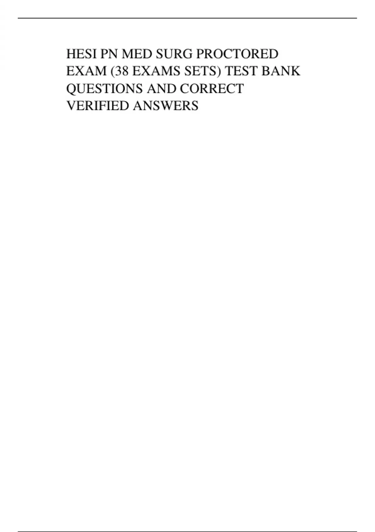 HESI PN MED SURG PROCTORED EXAM (38 EXAMS SETS) TEST BANK QUESTIONS AND CORRECT VERIFIED ANSWERS HESI PN MED SURG PROCTORED EXAM (38 EXAMS SETS) TEST BANK QUESTIONS AND CORRECT VERIFIED ANSWERS HESI PN MED SURG PROCTORED EXAM (38 EXAMS SETS) TEST BANK QUESTIONS AND CORRECT VERIFIED ANSWERS