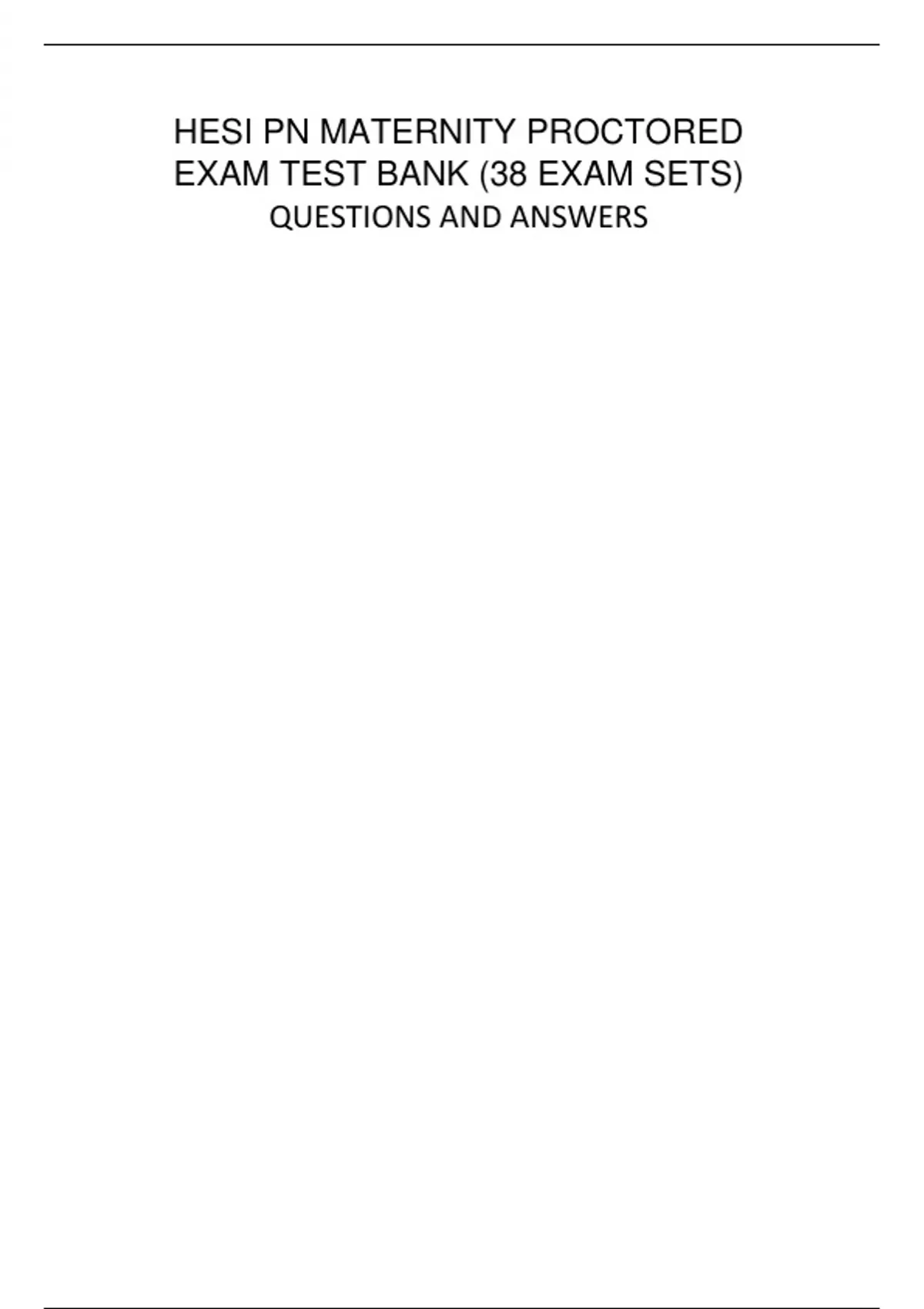 HESI PN MATERNITY PROCTORED EXAM TEST BANK (38 EXAM SETS) QUESTIONS AND ANSWERS