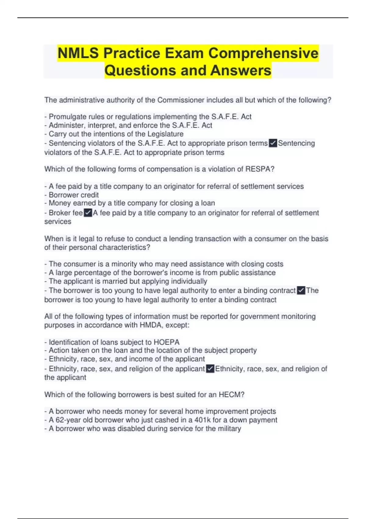 NMLS Practice Exam Comprehensive Questions and Answers