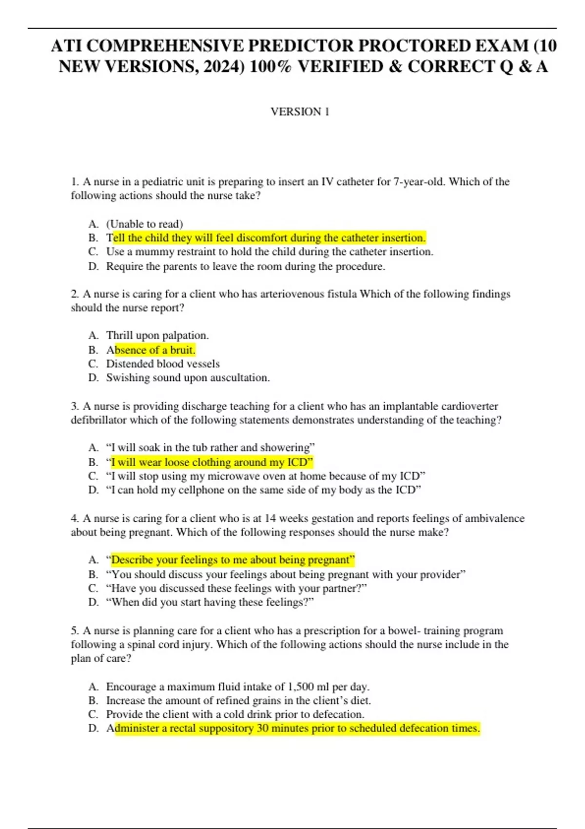 ATI COMPREHENSIVE PREDICTOR PROCTORED EXAM (10 NEW VERSIONS, 2024)