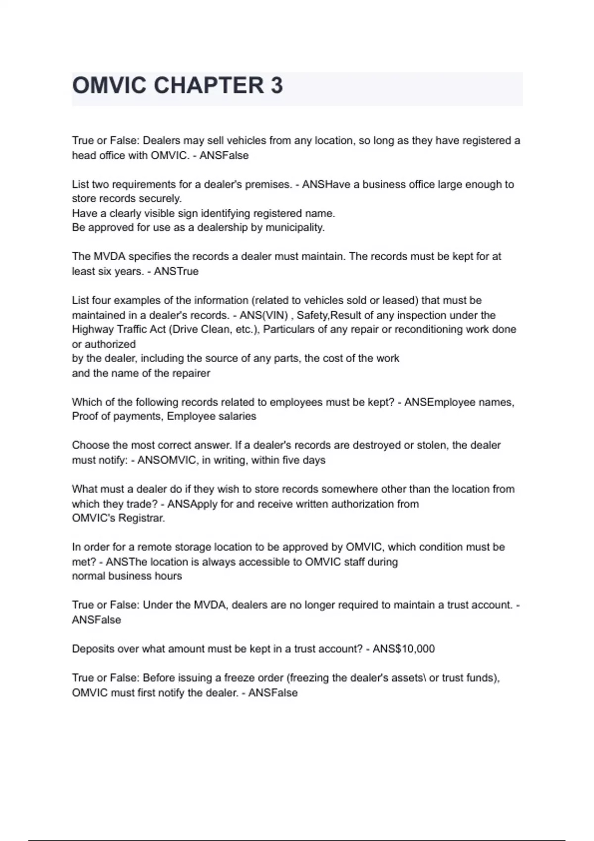 OMVIC CHAPTER 3 already graded A+ 2024/2025