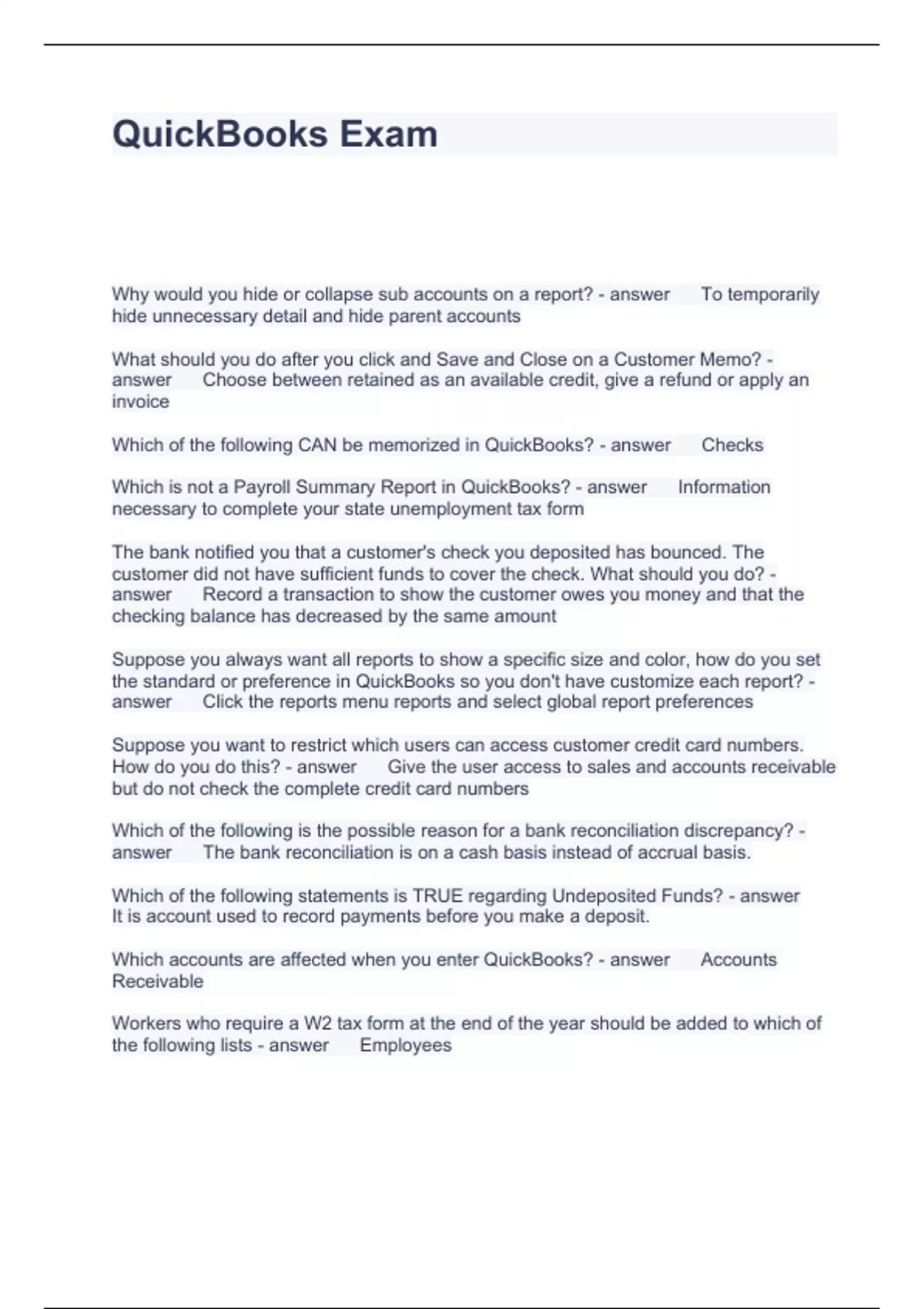 Exam of 14 pages for the course Quickbooks at Quickbooks (QuickBooks Exam)