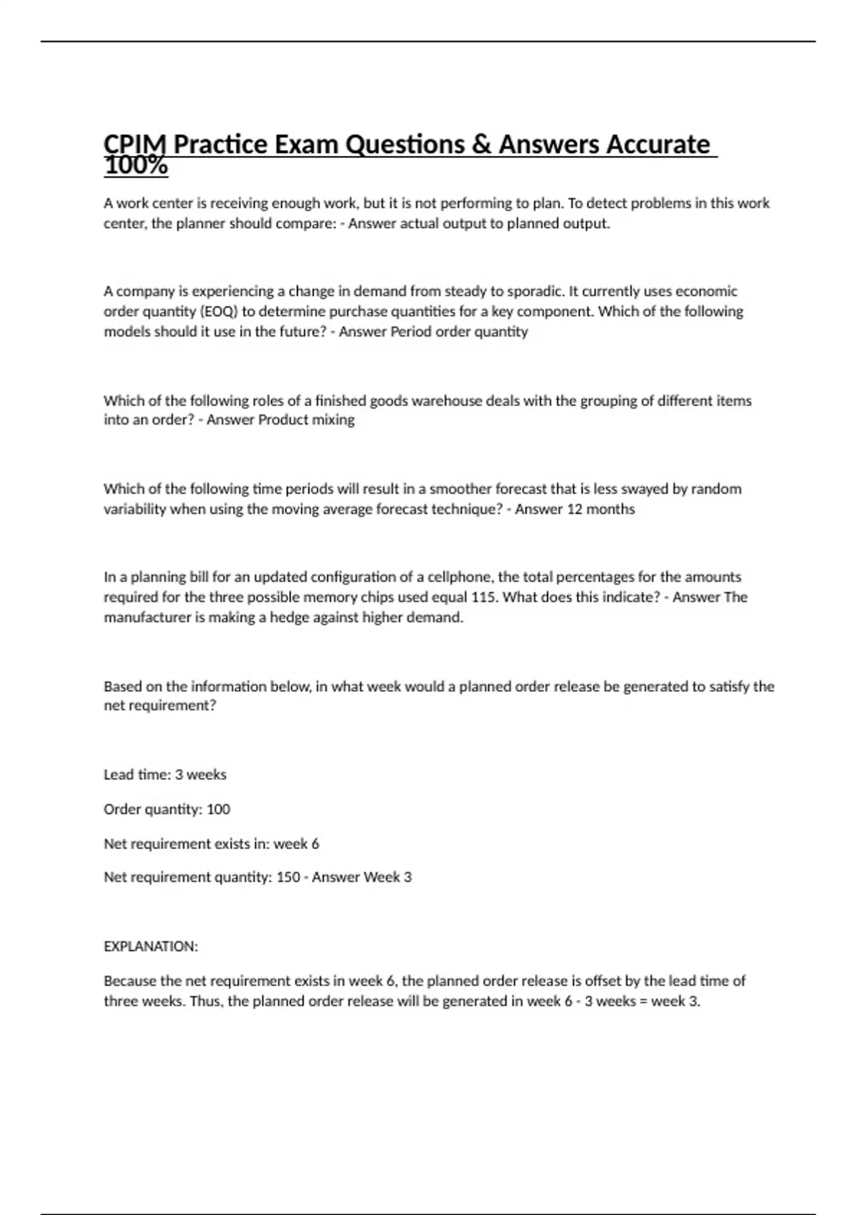 CPIM Practice Exam Questions & Answers Accurate 100%
