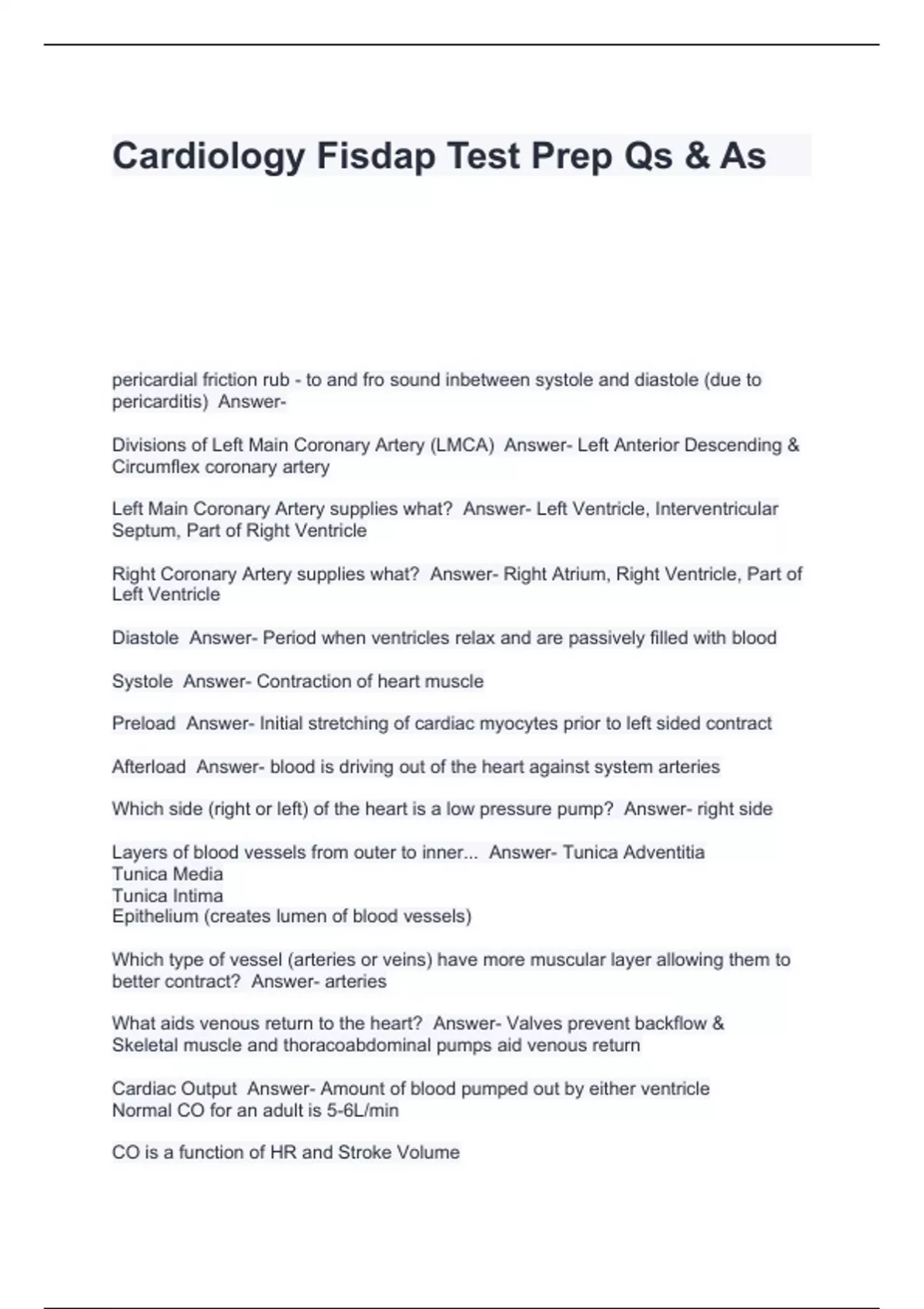 Cardiology Fisdap Test Prep Qs & As.