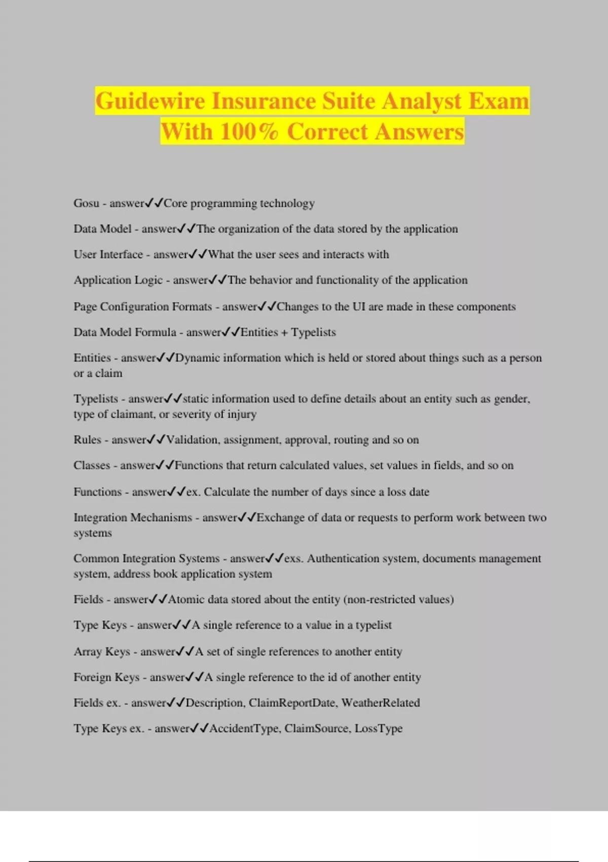 Guidewire Insurance Suite Analyst Exam With 100% Correct Answers