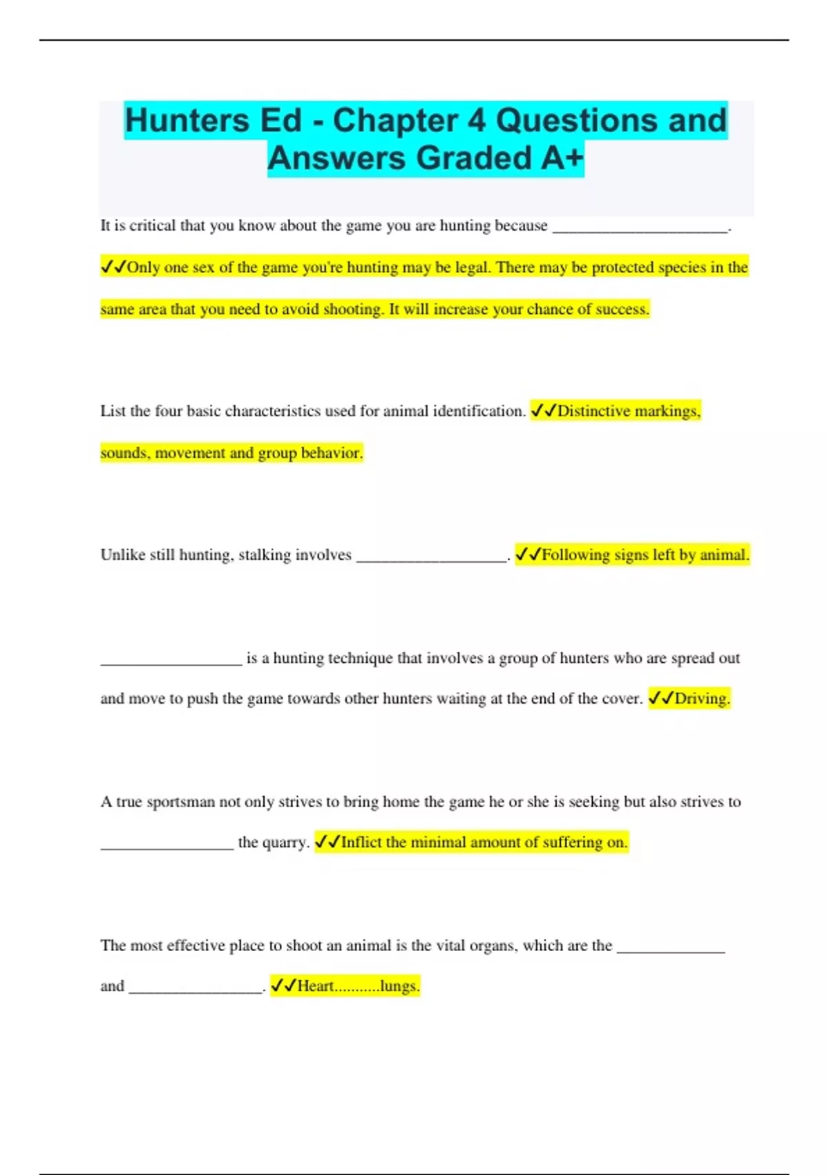 Hunters Ed - Chapter 4 Questions and Answers Graded A+