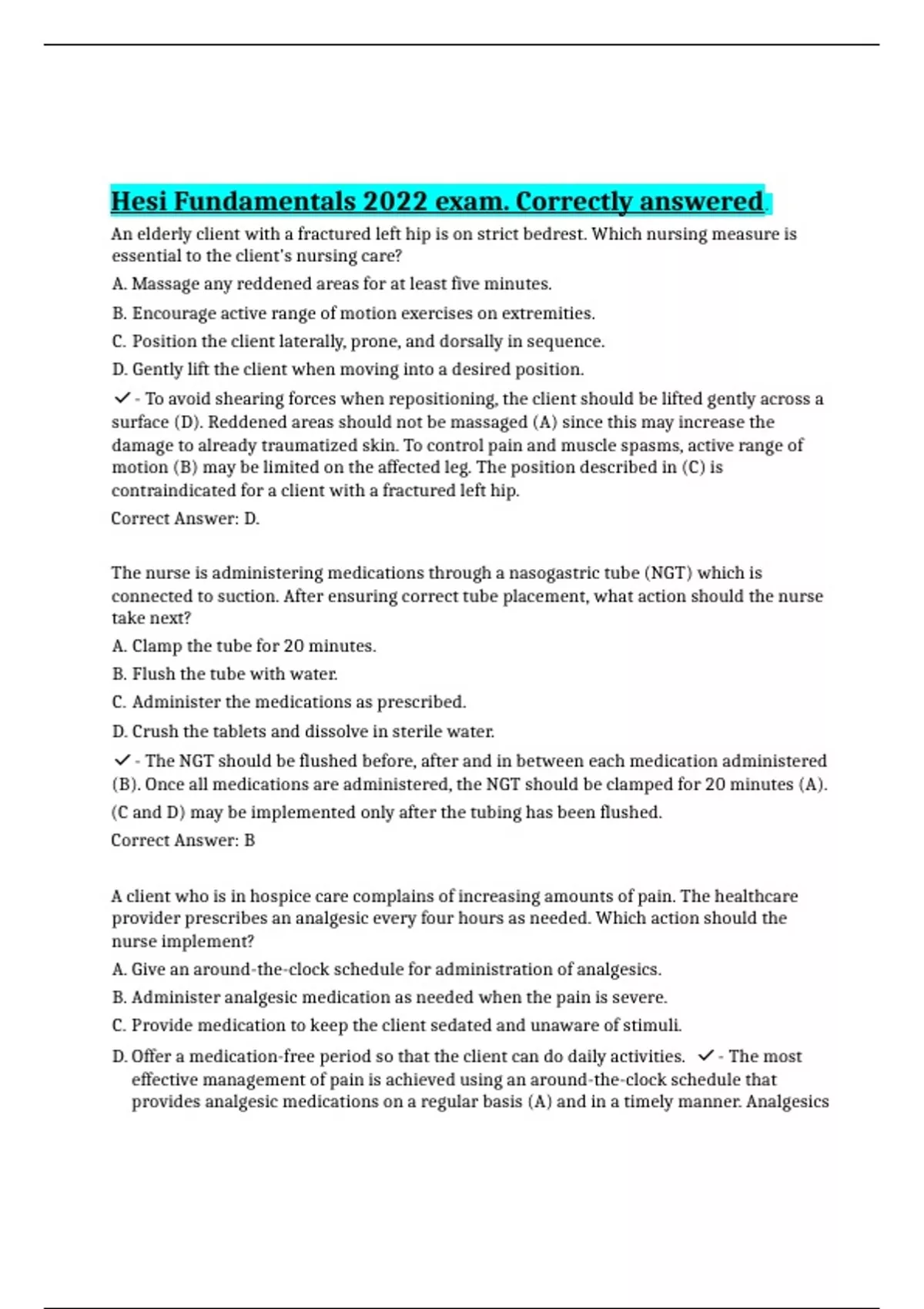 HESI FUNDAMENTALS EXAM SPRING 2023.TEST BANK UPDATED 100% CORRECT