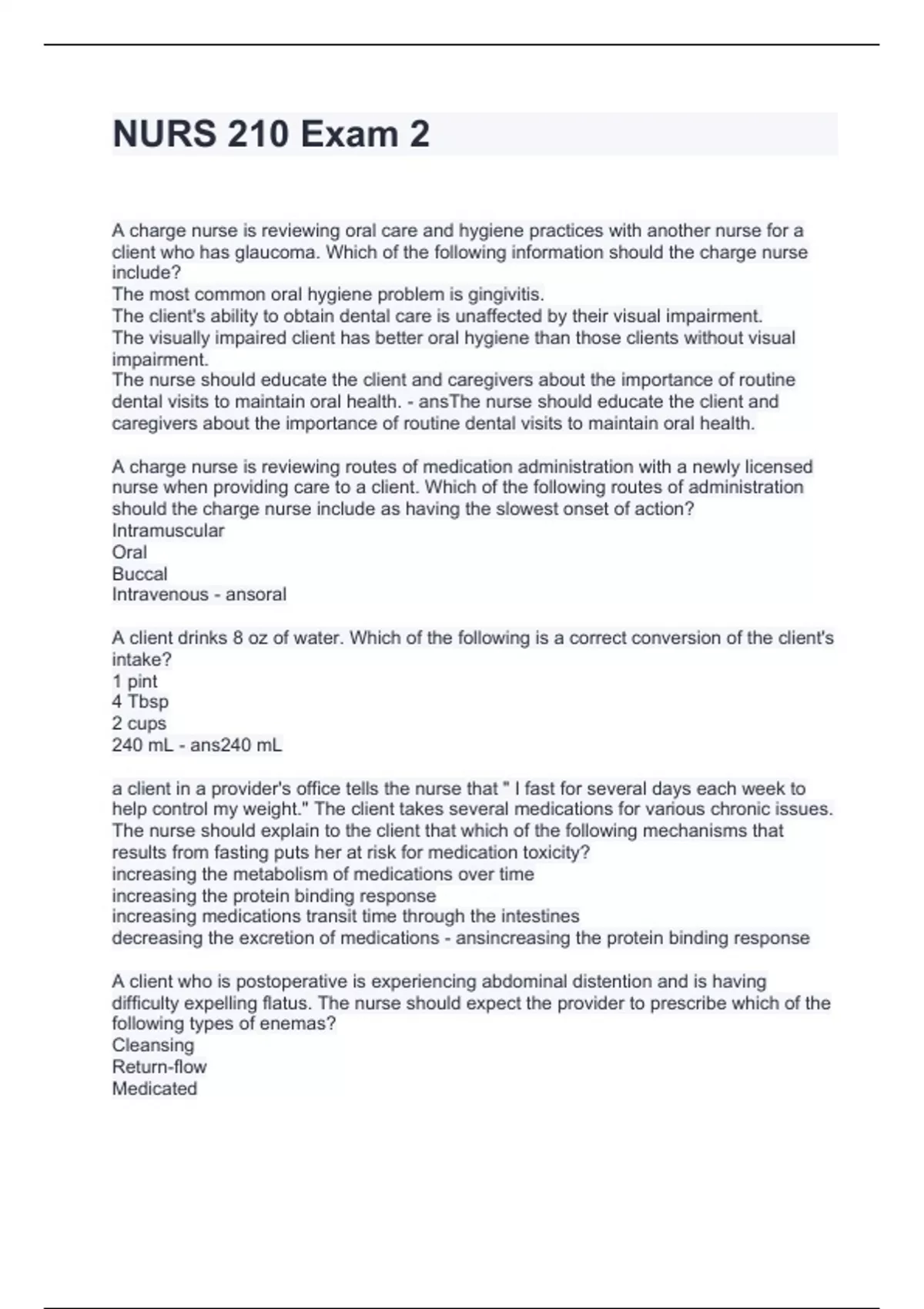 NURS 210 Exam 2