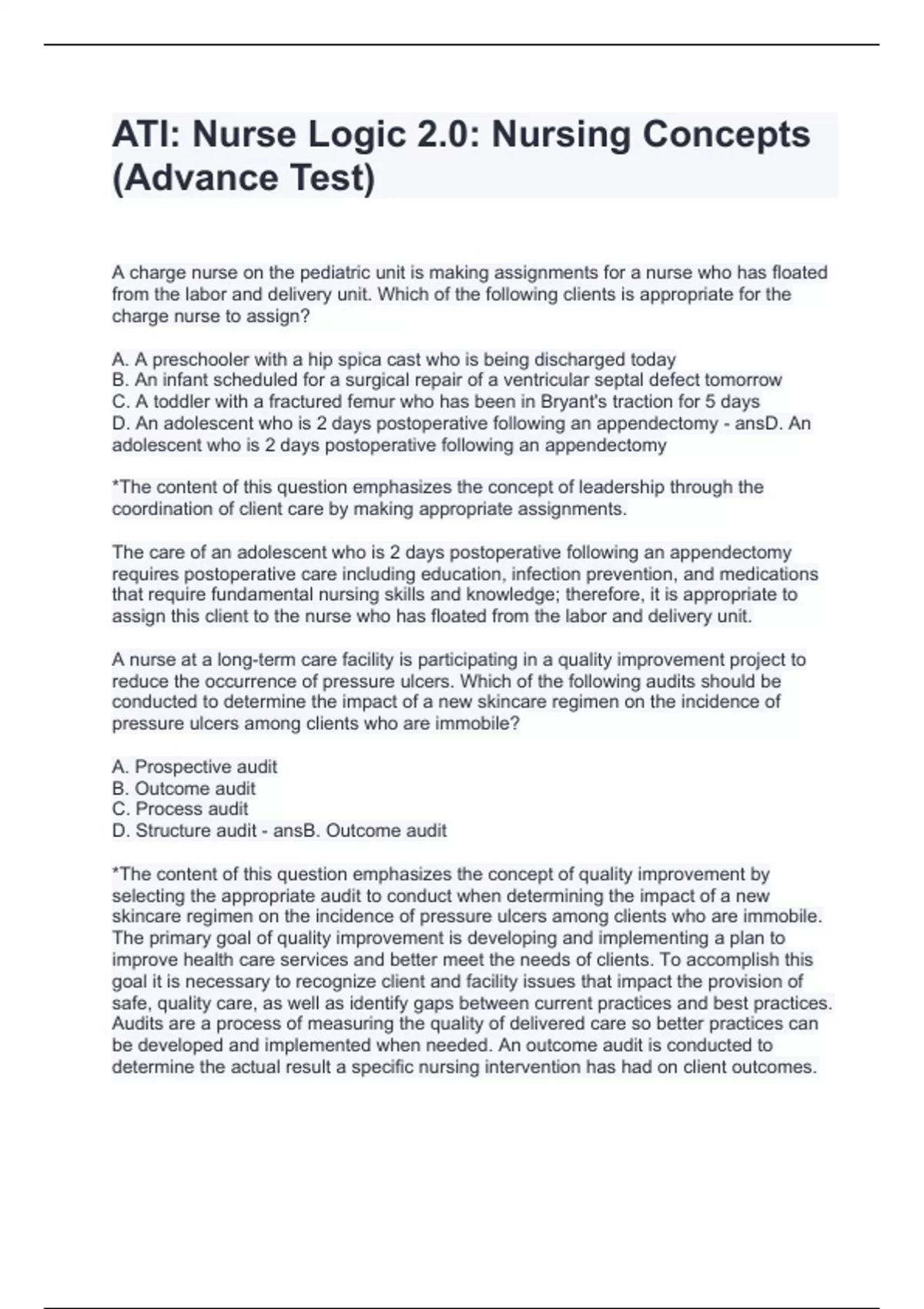 ATI: Nurse Logic 2.0: Nursing Concepts (Advance Test)