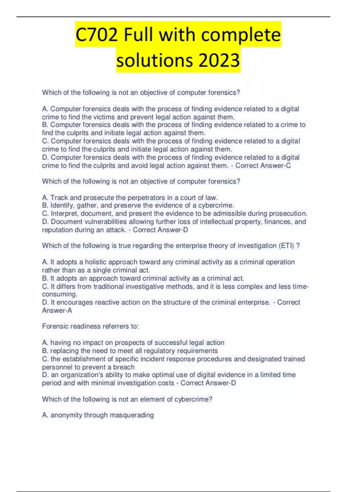 C702 Full with complete solutions 2023