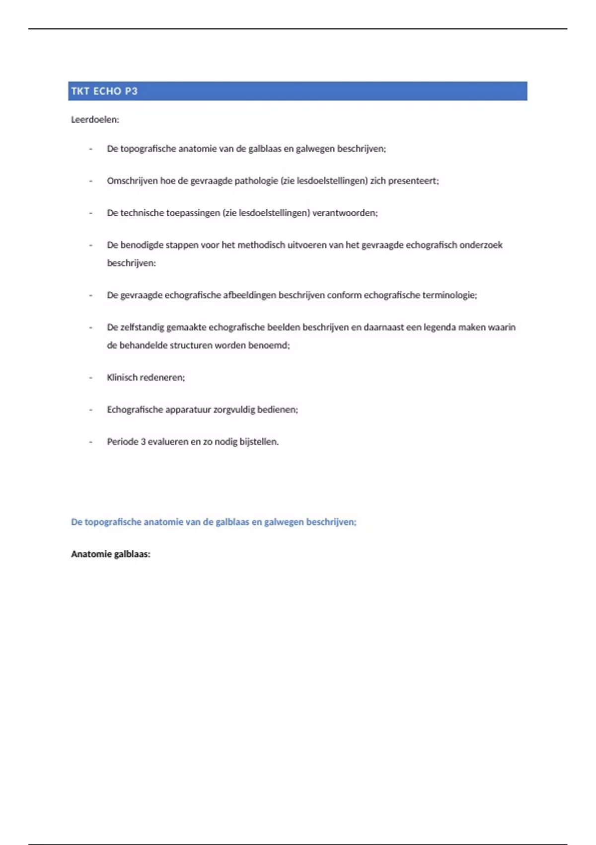 TKT echografie periode 3 jaar 1 samenvatting
