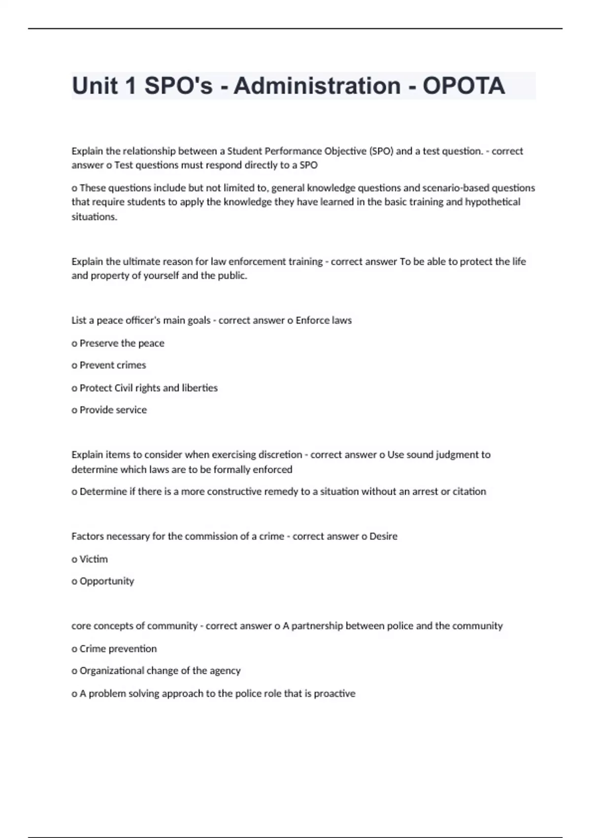 Unit 1 SPO's - Administration - OPOTA correctly answered 2023/2024
