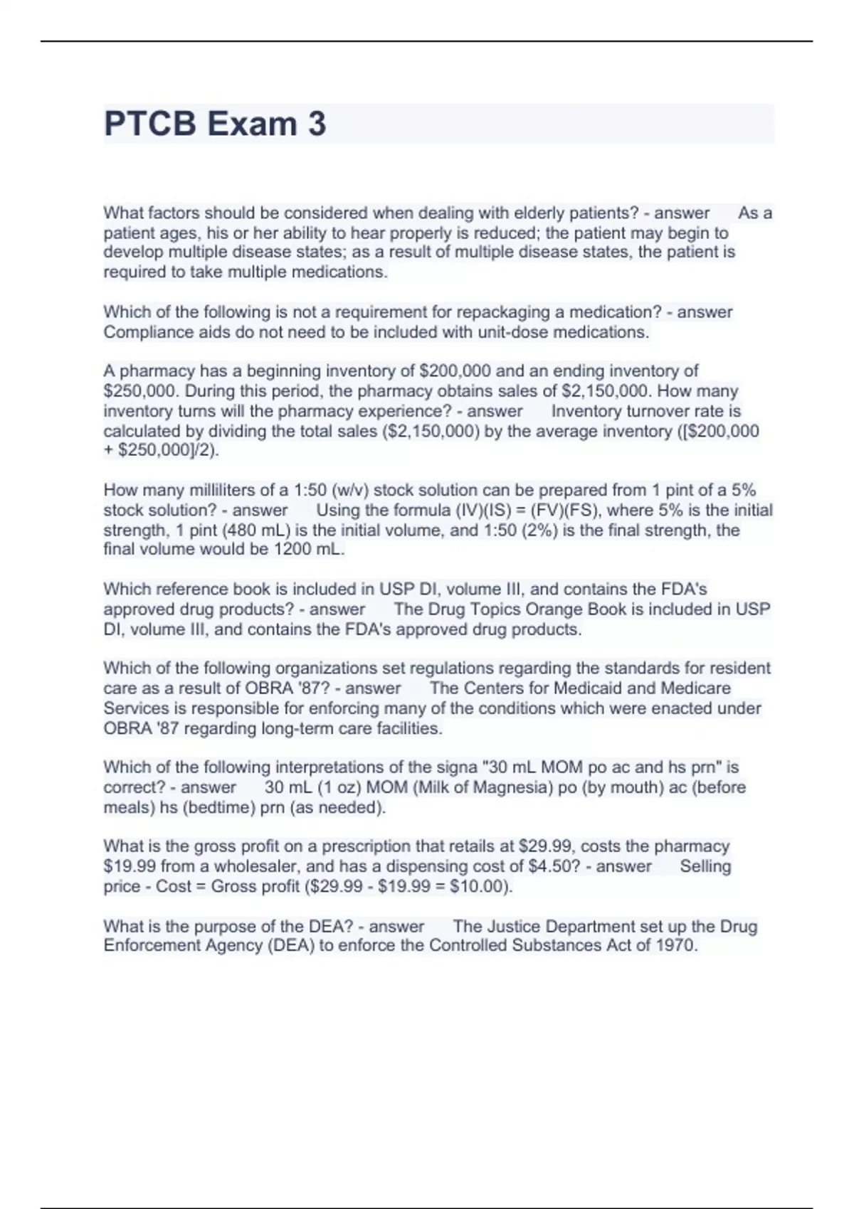 PTCB Exam 3 Questions and Answers 2024