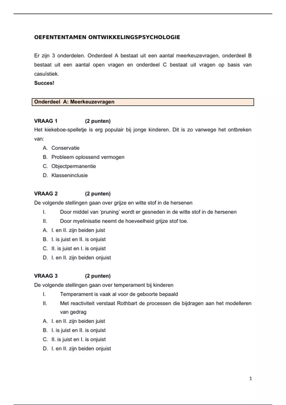 Oefententamen - Ontwikkelingspsychologie