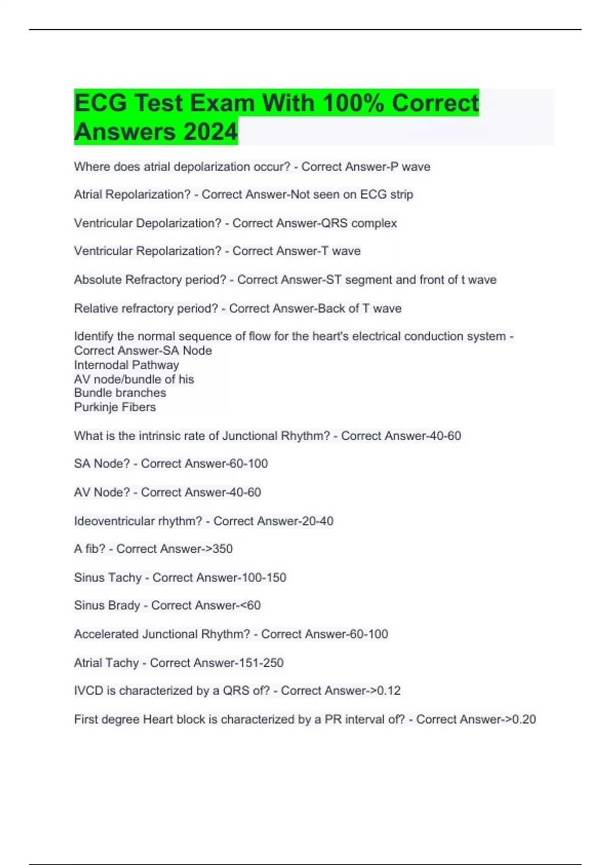ECG Test Exam With 100% Correct Answers 2024