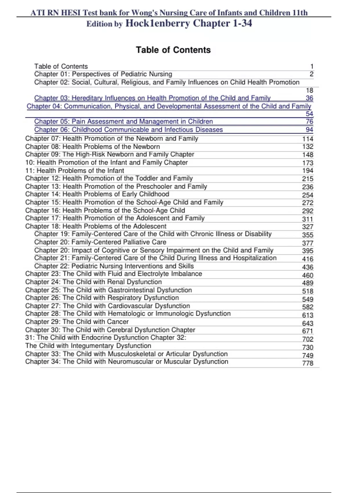 ATI RN HESI Test bank for Wong's Nursing Care of Infants and Children 11th Edition by Hock1enberry Chapter 1-34