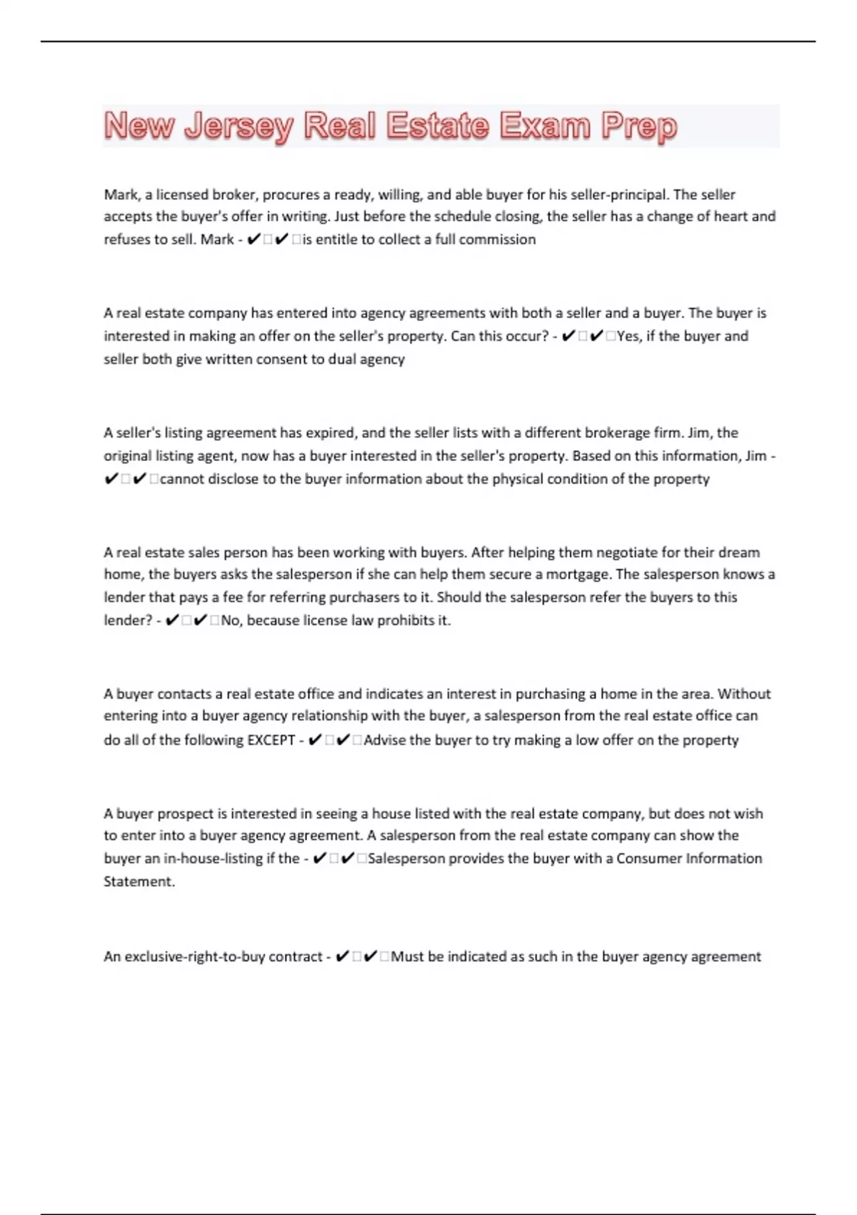 New Jersey Real Estate 80 Exam Prep Questions And Answers